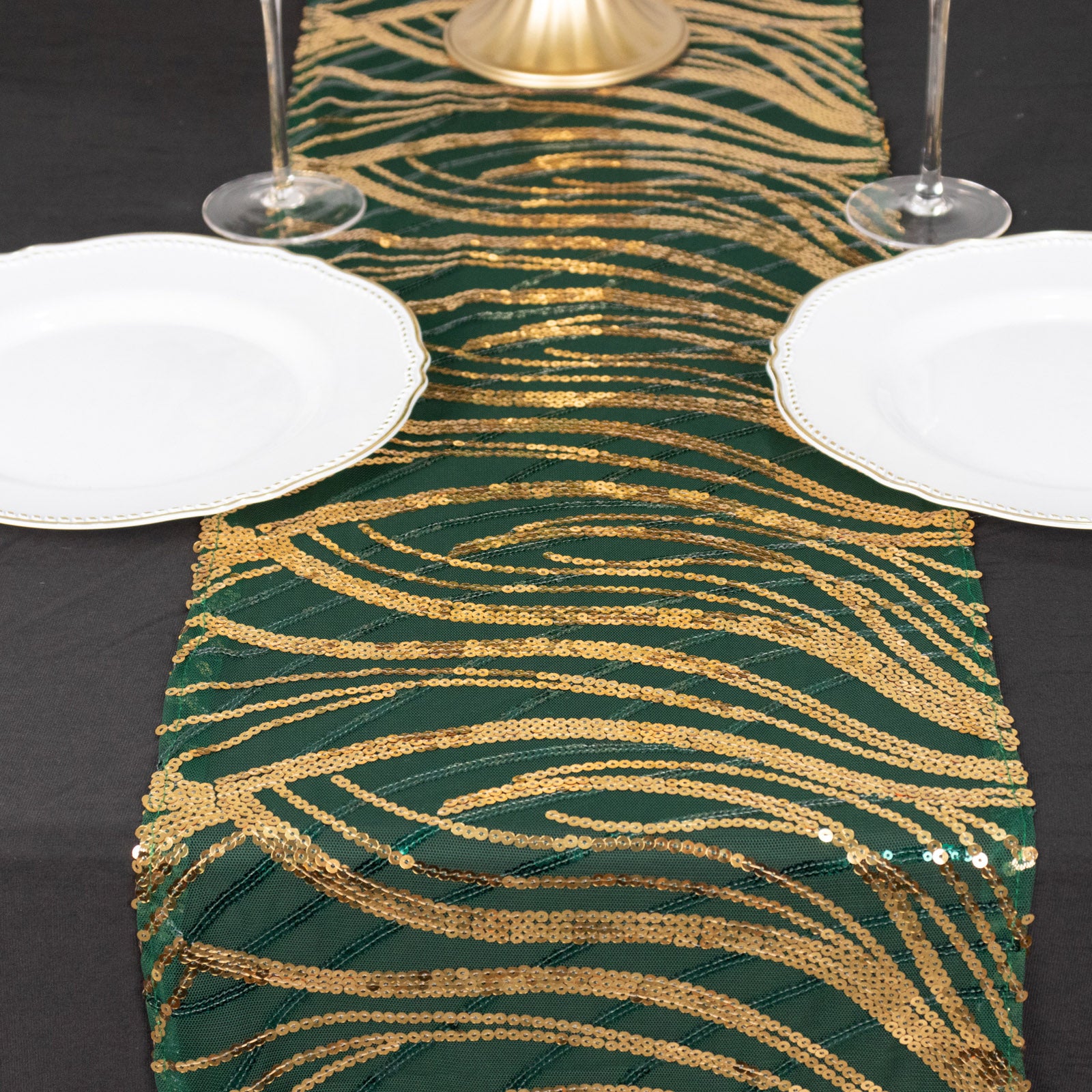 The Hunter Emerald Green Gold Wave Table Runner can enhance various themes. Use it for a glamorous wedding reception or a festive holiday dinner. Its shimmering design fits many occasions.