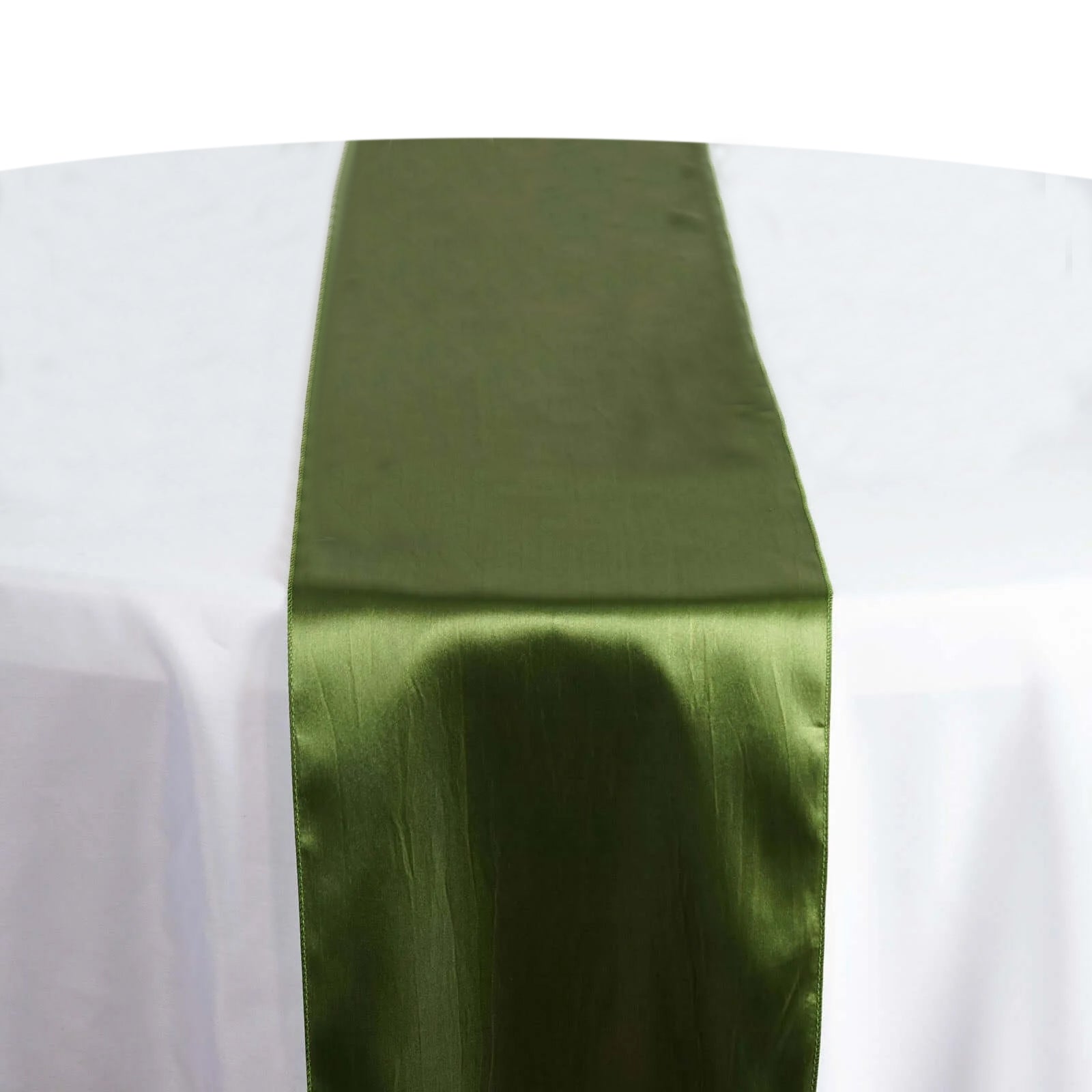 Crafted from premium quality satin, this table runner is durable and designed for reuse. You can confidently use it for multiple events without worrying about wear and tear. Transform your tablescape with the Olive Green Satin Table Runner and enjoy the luxurious feel it brings to your décor.