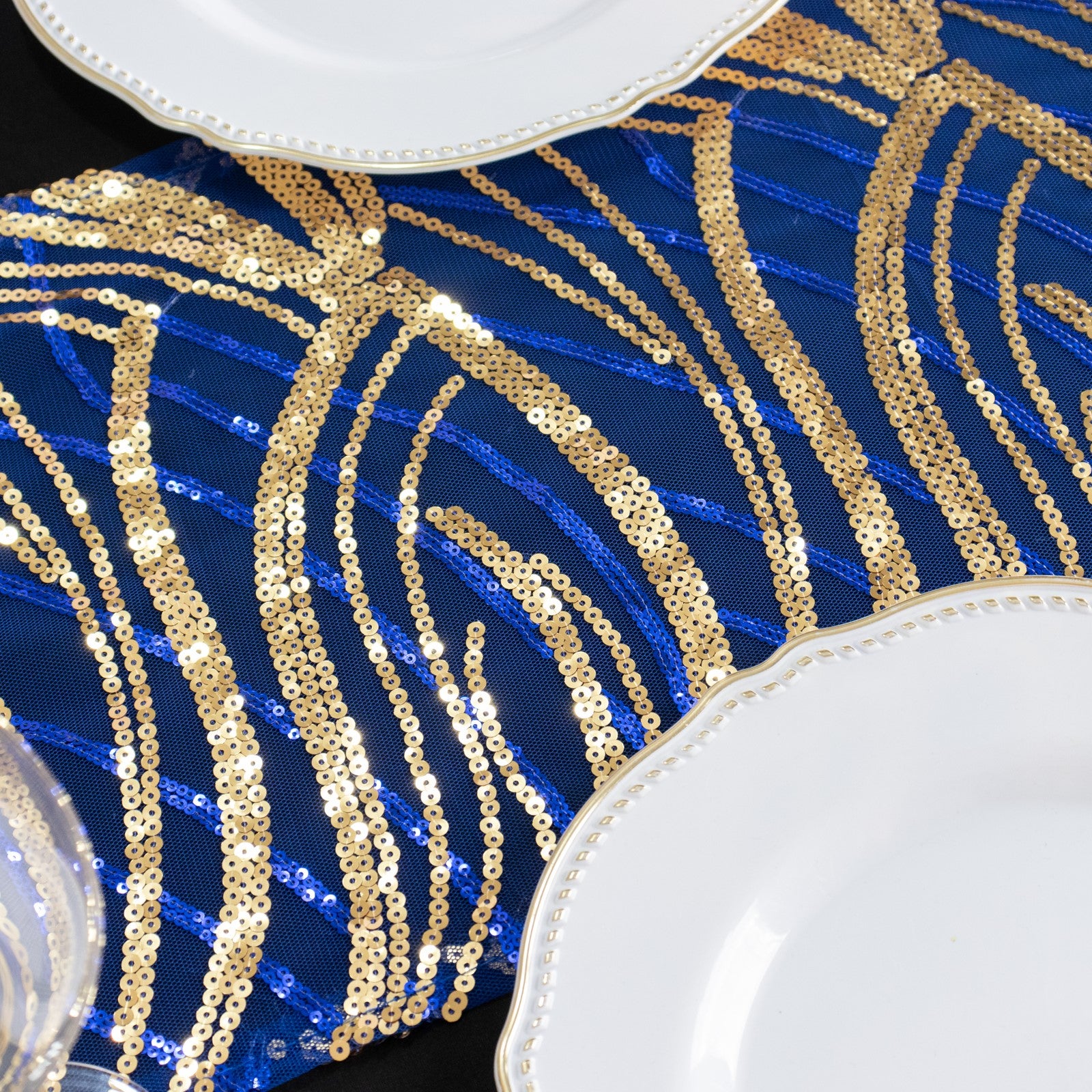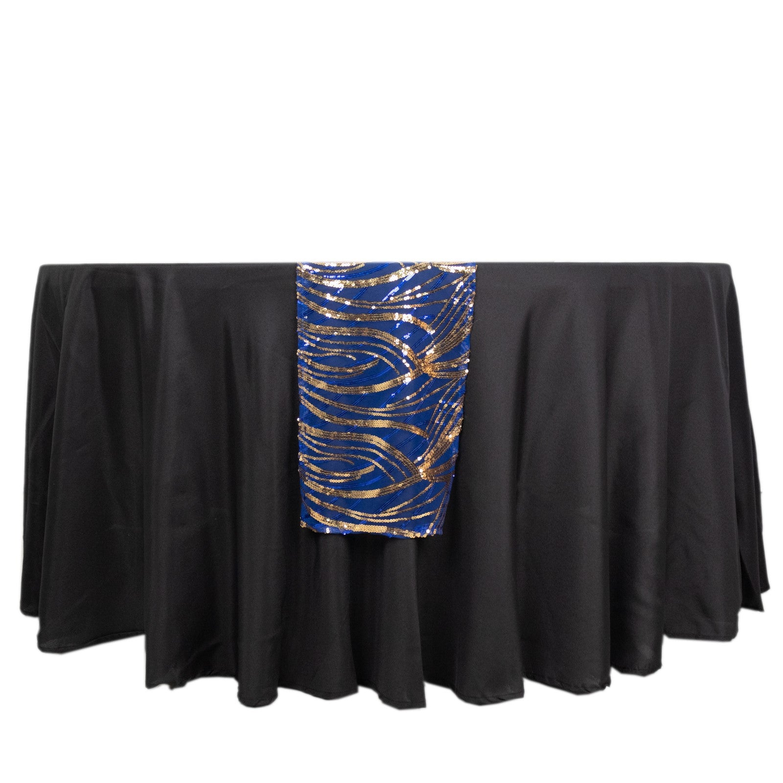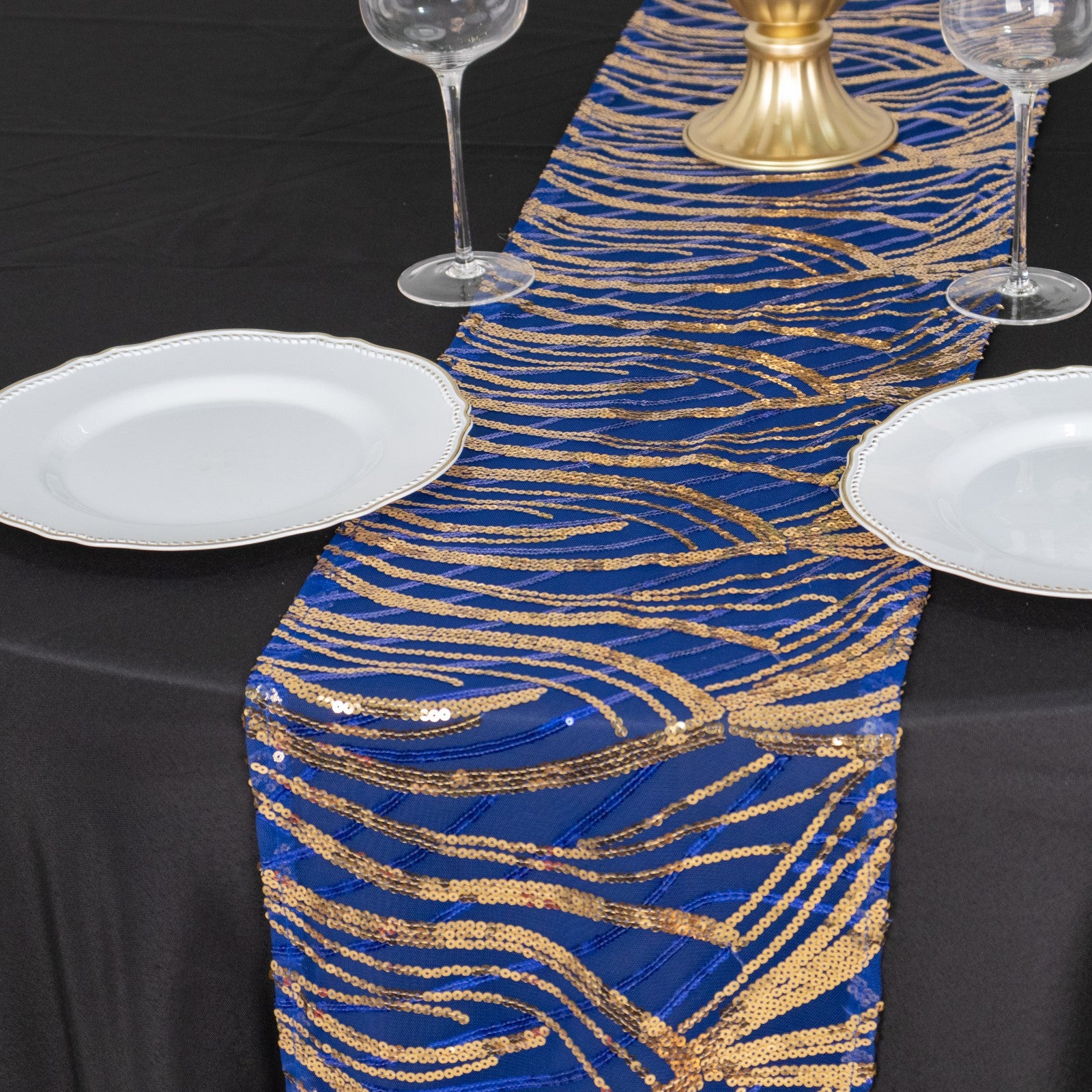 12"x108" Royal Blue Gold Wave Embroidered Sequins Table Runner