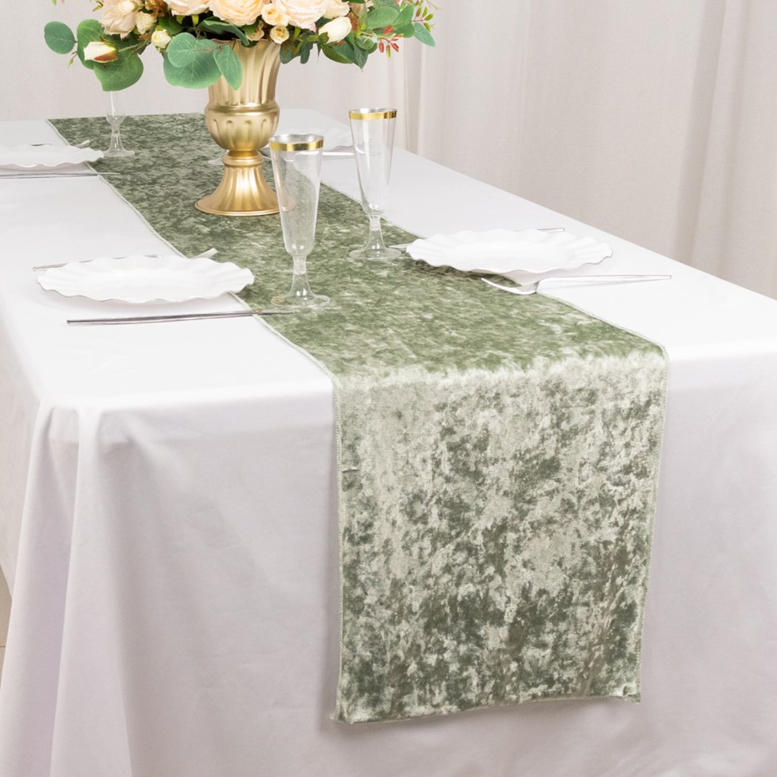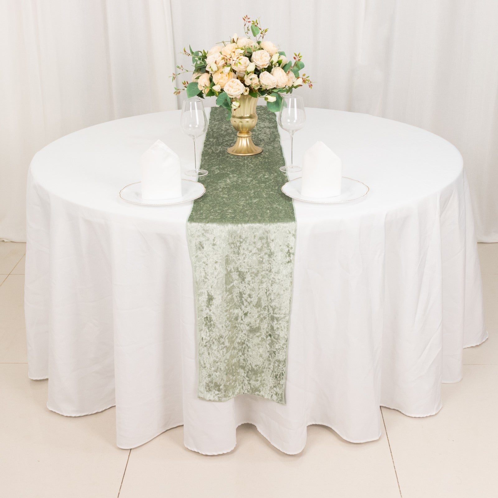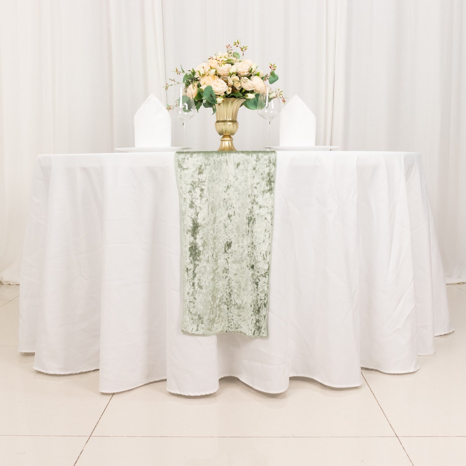 12"x108" Sage Green Premium Crushed Velvet Table Runner - 190GSM