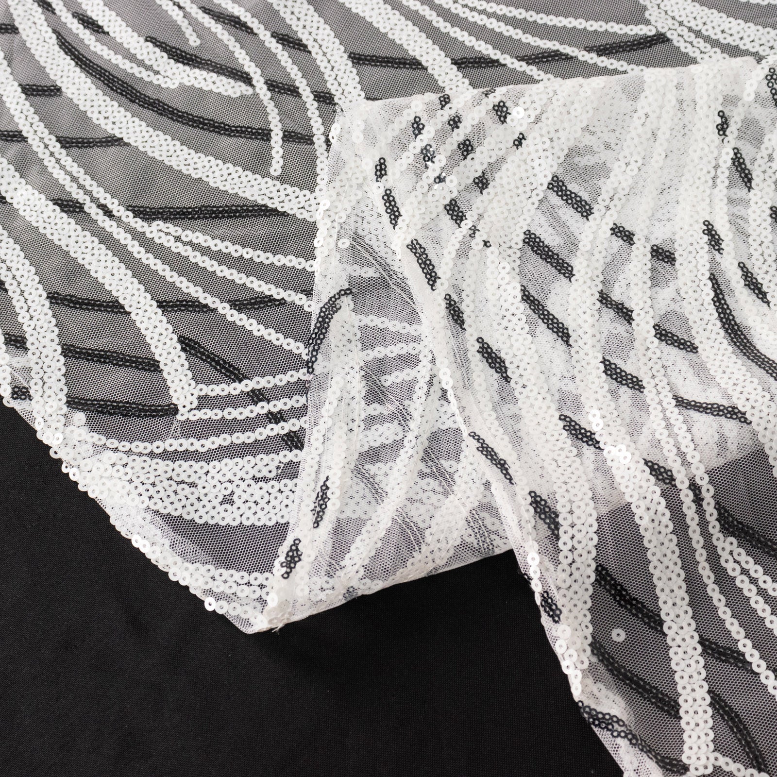 The White Black Wave Embroidered Sequins Table Runner opens up a world of décor possibilities. Use it as a base for elegant centerpieces, allowing floral arrangements or candles to shine against its shimmering backdrop. The contrast of the sequins against natural elements creates a stunning visual.