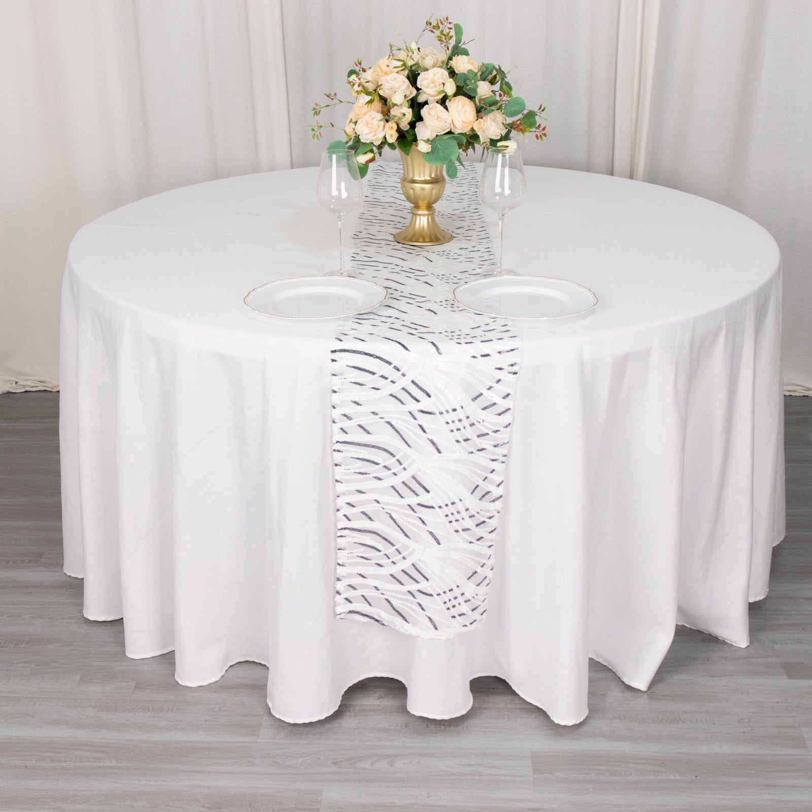 Table runners serve multiple purposes in event décor. They add visual interest and can transform a simple table into a stunning focal point. The White Black Wave Embroidered Sequins Table Runner brings glamour and sophistication, making it perfect for various occasions.
