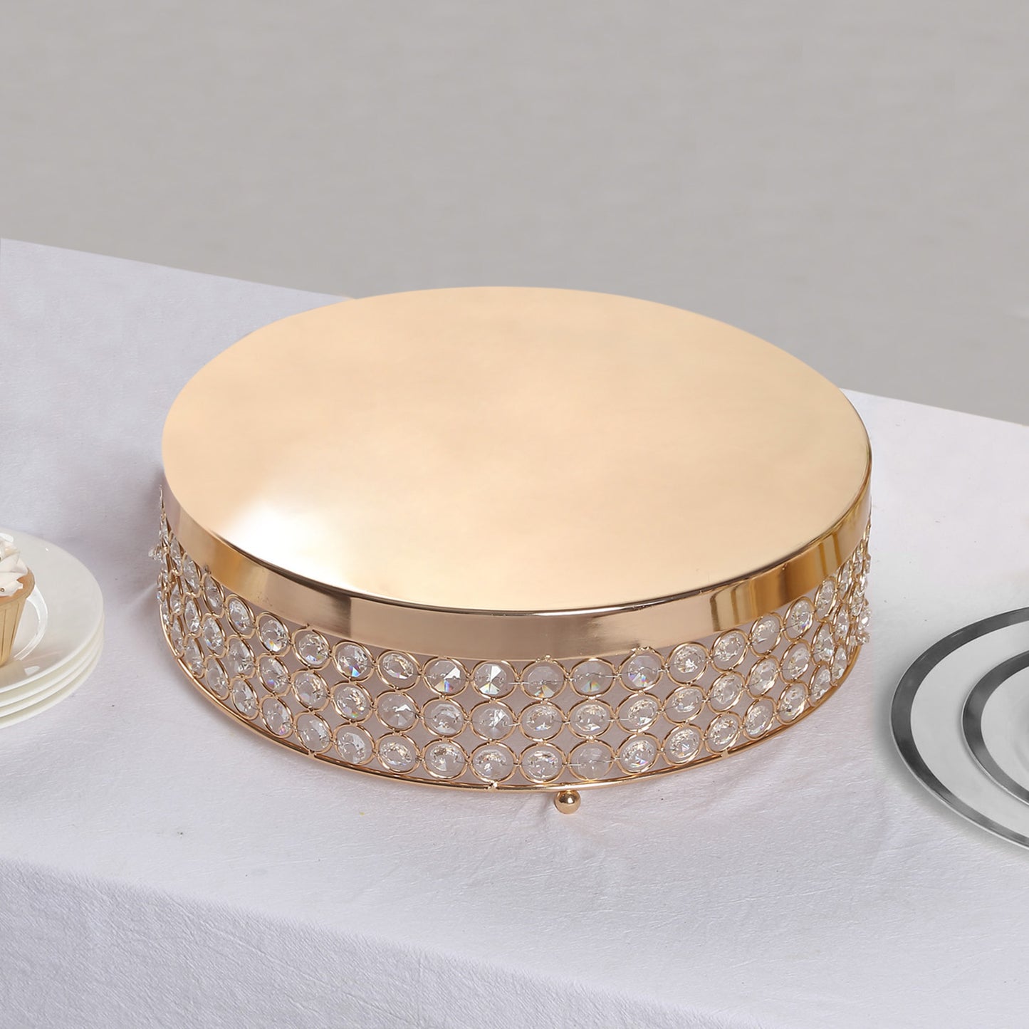 14" Gold Crystal Beaded Metal Cake Stand Pedestal, Cupcake Display, Dessert Riser