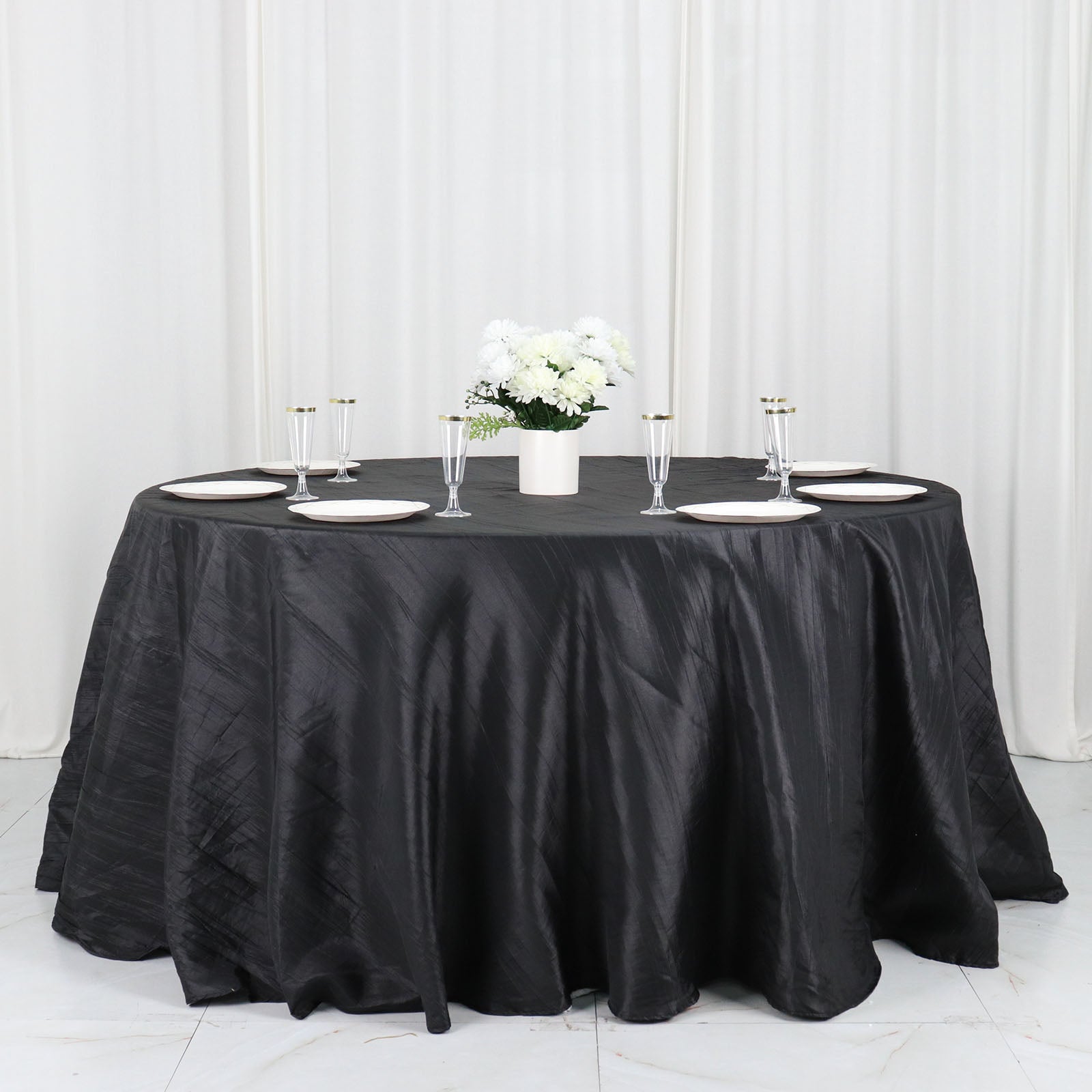 132" Black Accordion Crinkle Taffeta Seamless Round Tablecloth