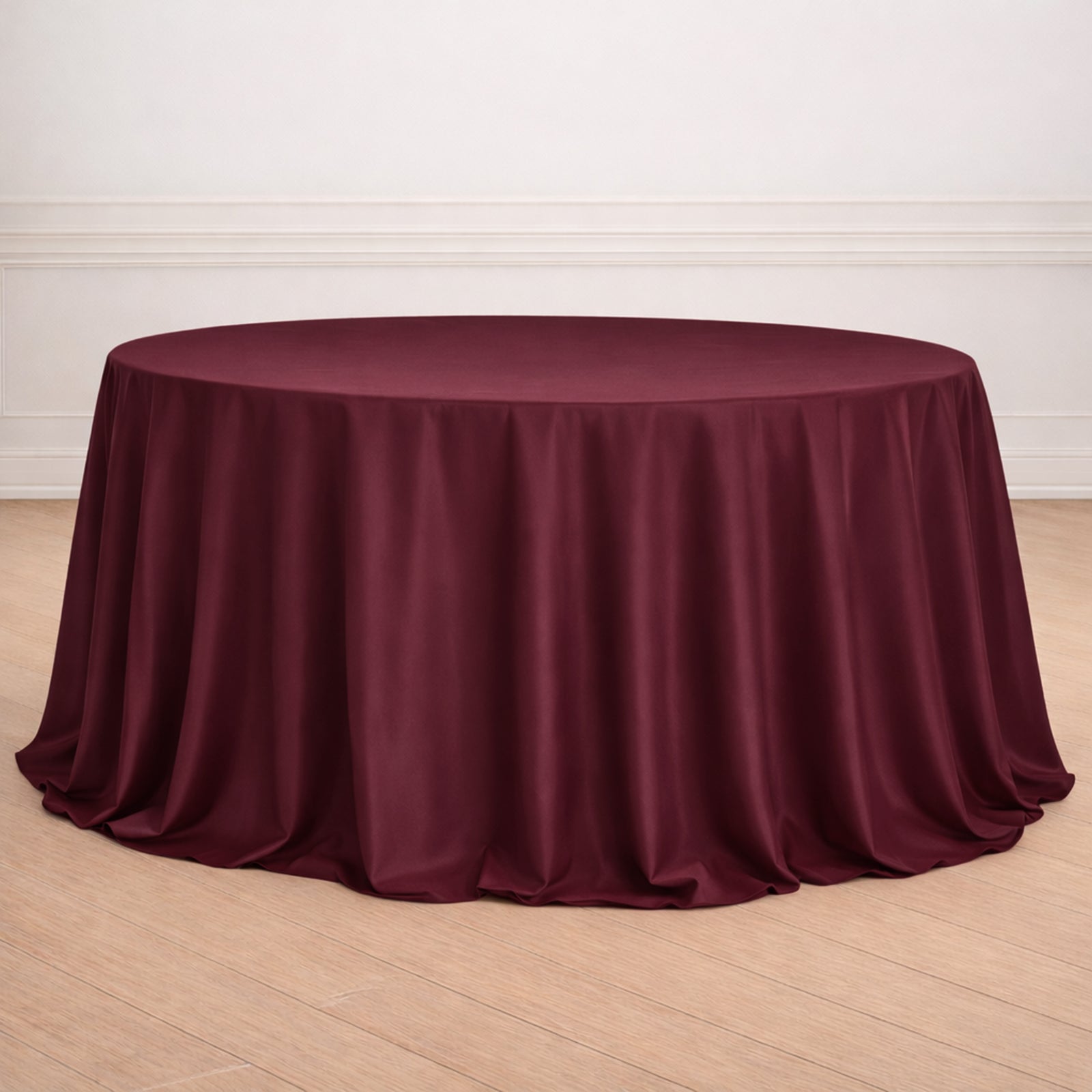Caring for the Burgundy Seamless Polyester Round Tablecloth is simple. The stain and wrinkle-resistant properties mean less time spent on upkeep. You can enjoy your event without worrying about spills or creases ruining the ambiance.