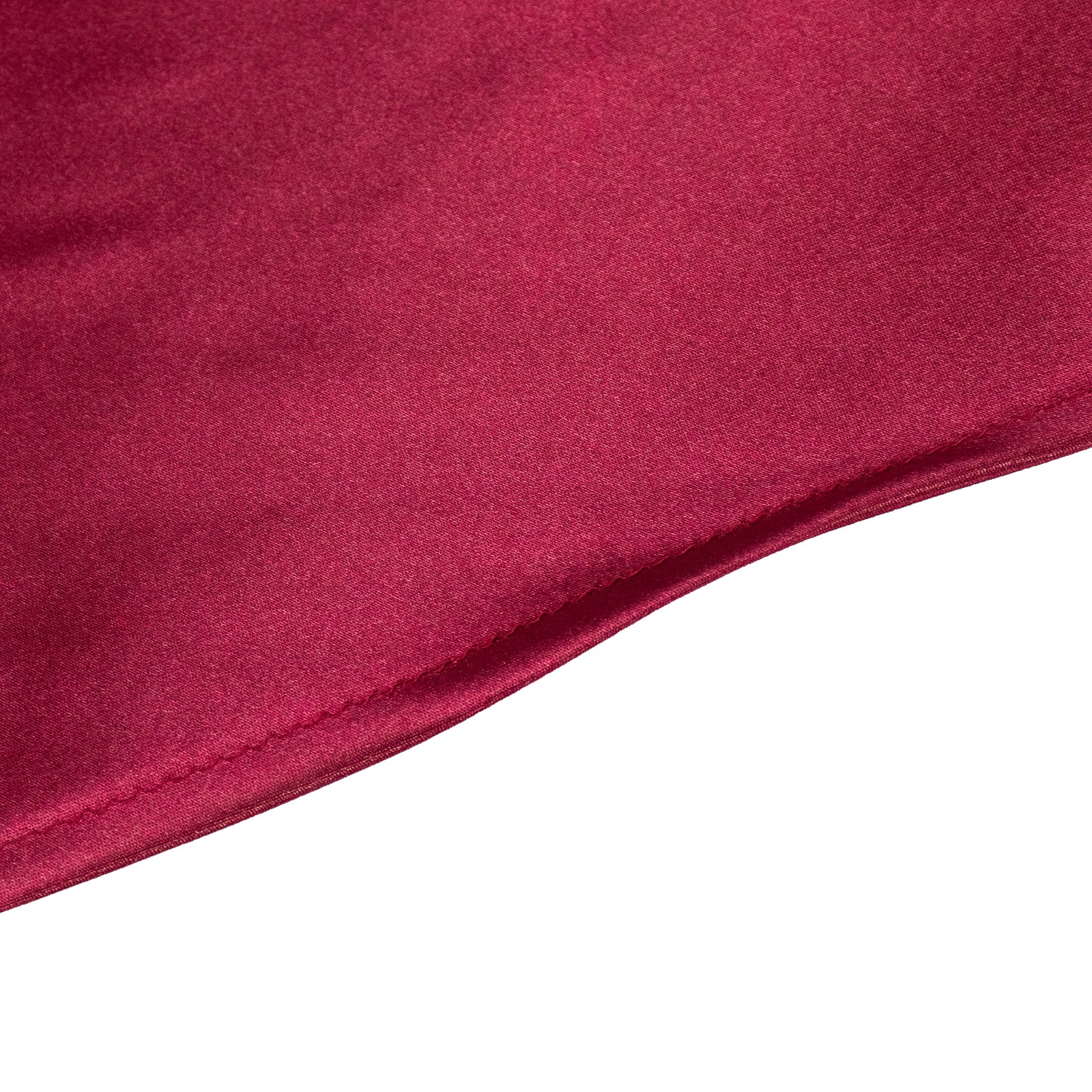 132" Burgundy Seamless Satin Round Tablecloth for 6 Foot Table With Floor-Length Drop