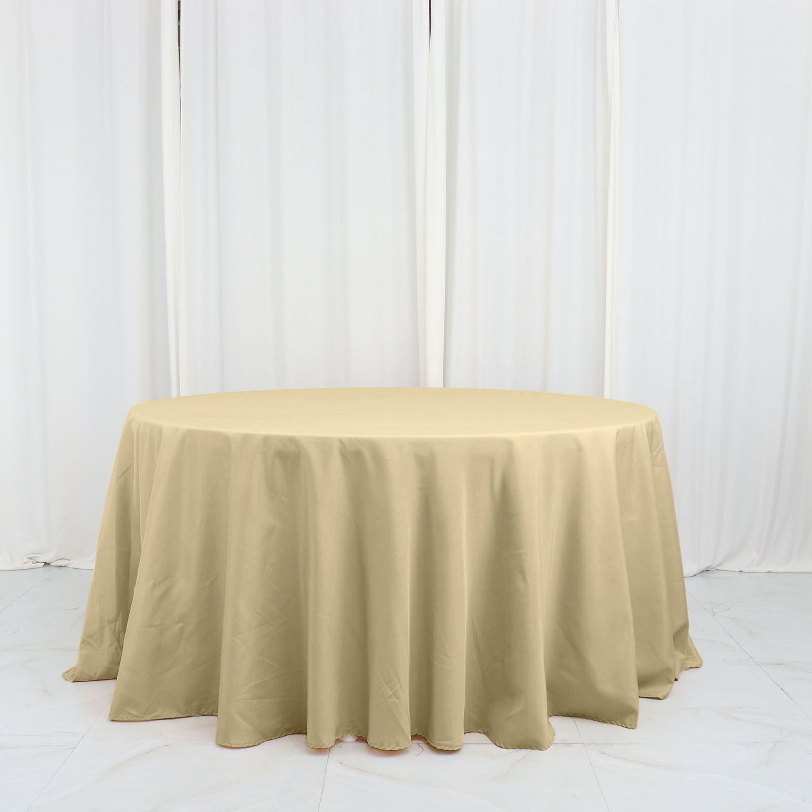 The Champagne Seamless Polyester Round Tablecloth is not just about looks; it’s built to last. Made from high-quality polyester, this tablecloth withstands extensive use without losing its charm. Its durable material ensures that it will remain vibrant and intact, even after multiple washes.