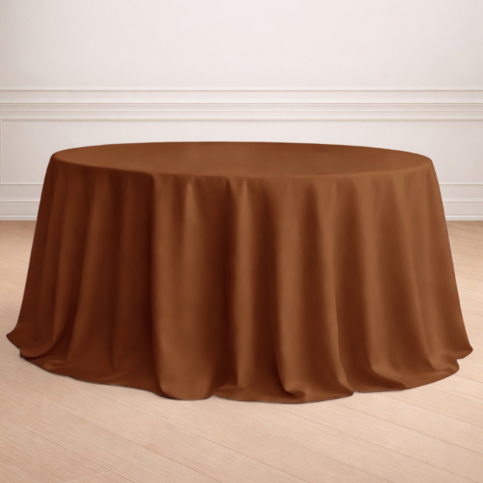 132" Cinnamon Brown Seamless Polyester Round Tablecloth