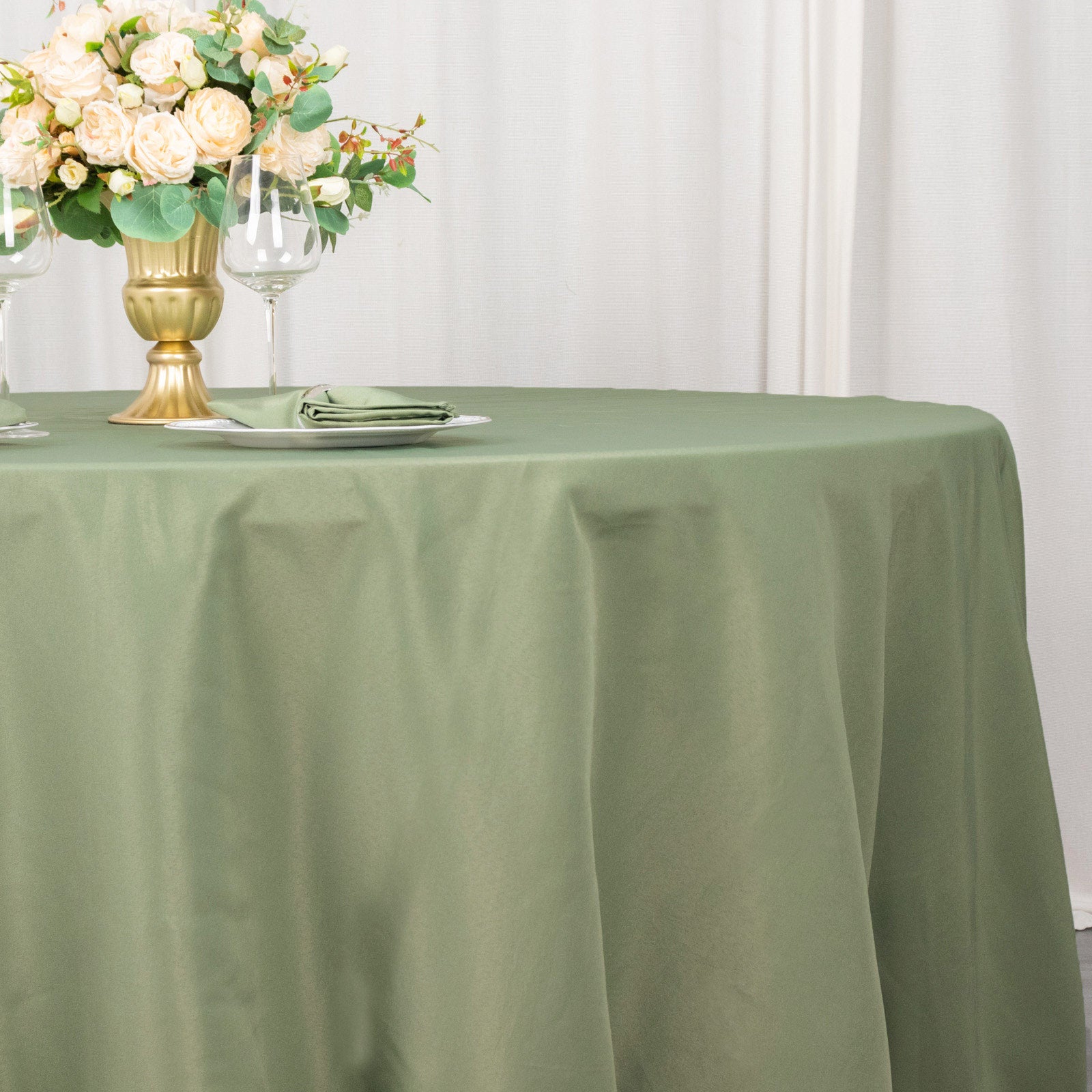 The Dusty Sage Green Polyester Round Tablecloth is versatile enough for any event style. Use it as a standalone table cover or layer it with other table linens for a unique look. Its round shape allows for creative arrangements that enhance your decor.