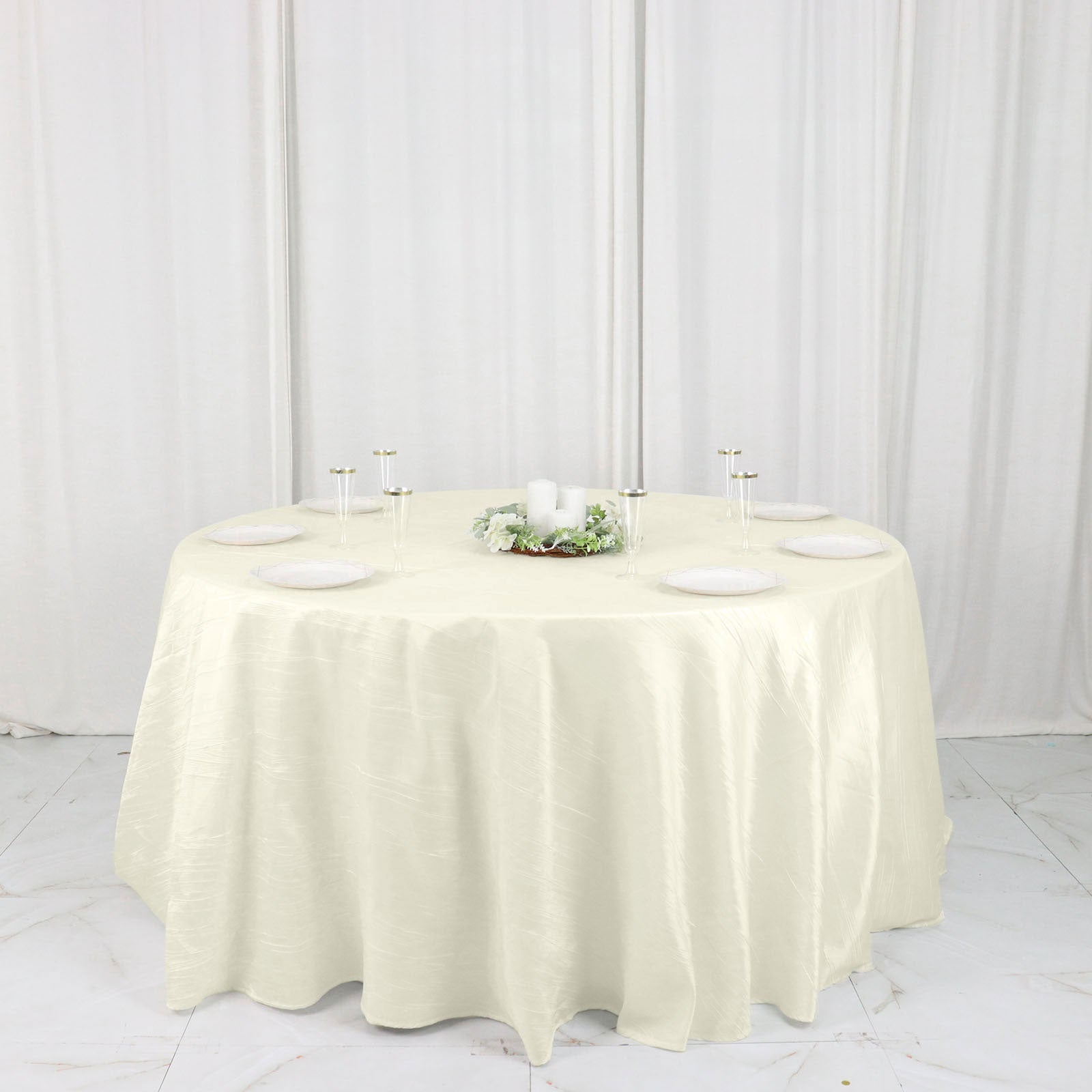 132" Ivory Accordion Crinkle Taffeta Seamless Round Tablecloth