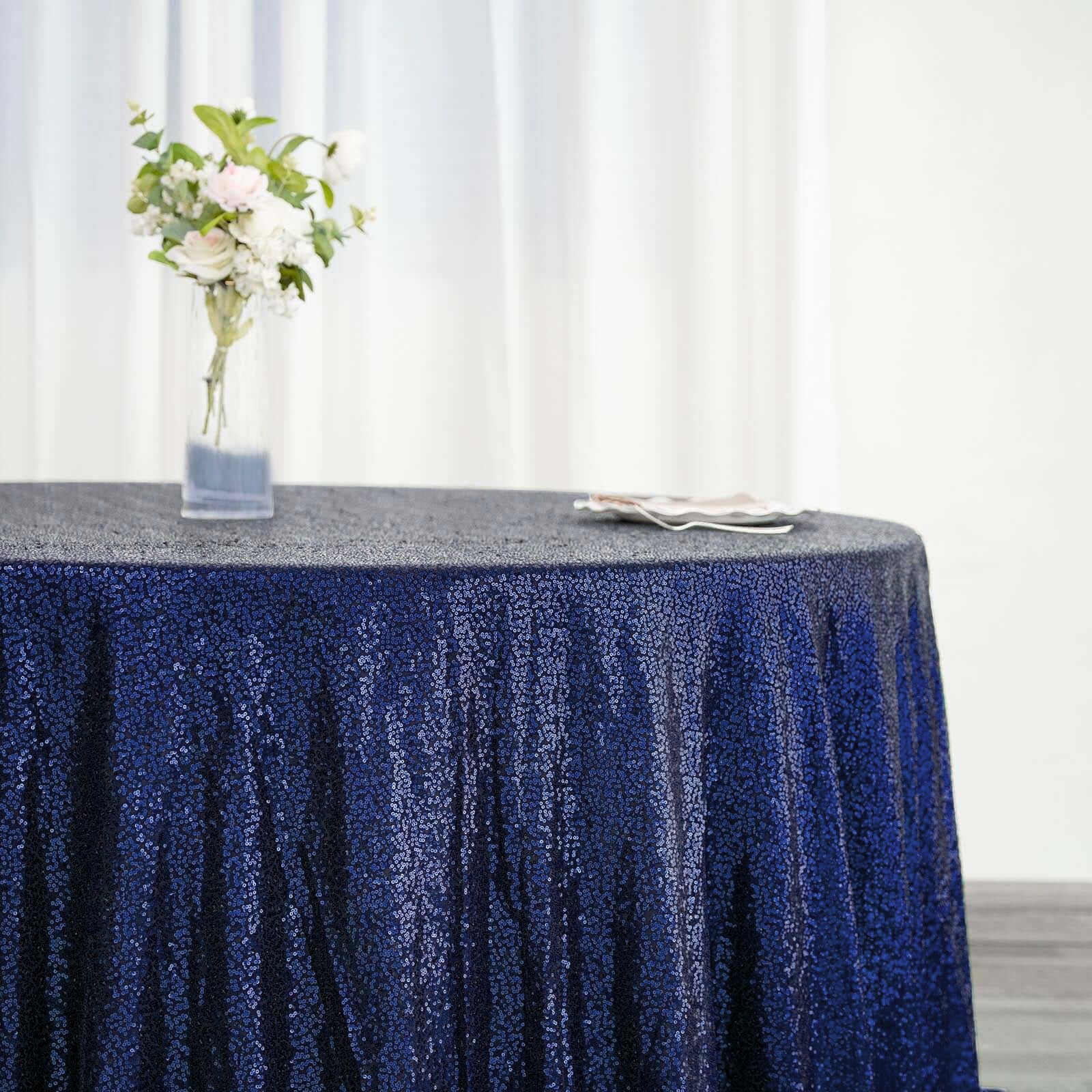132" Navy Blue Seamless Sequin Round Tablecloth, Sparkly Tablecloth