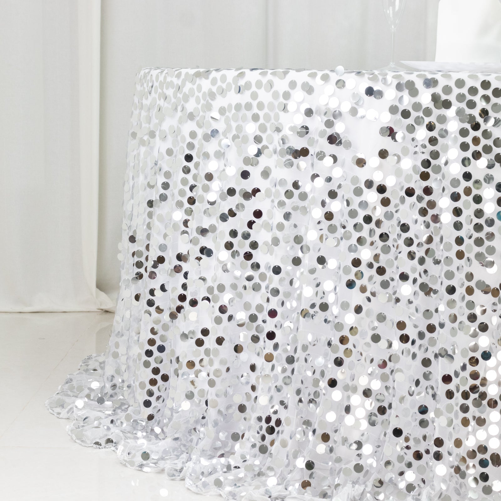 Sequin 132" Round Tablecloth Silver - Big Payette Table Cover