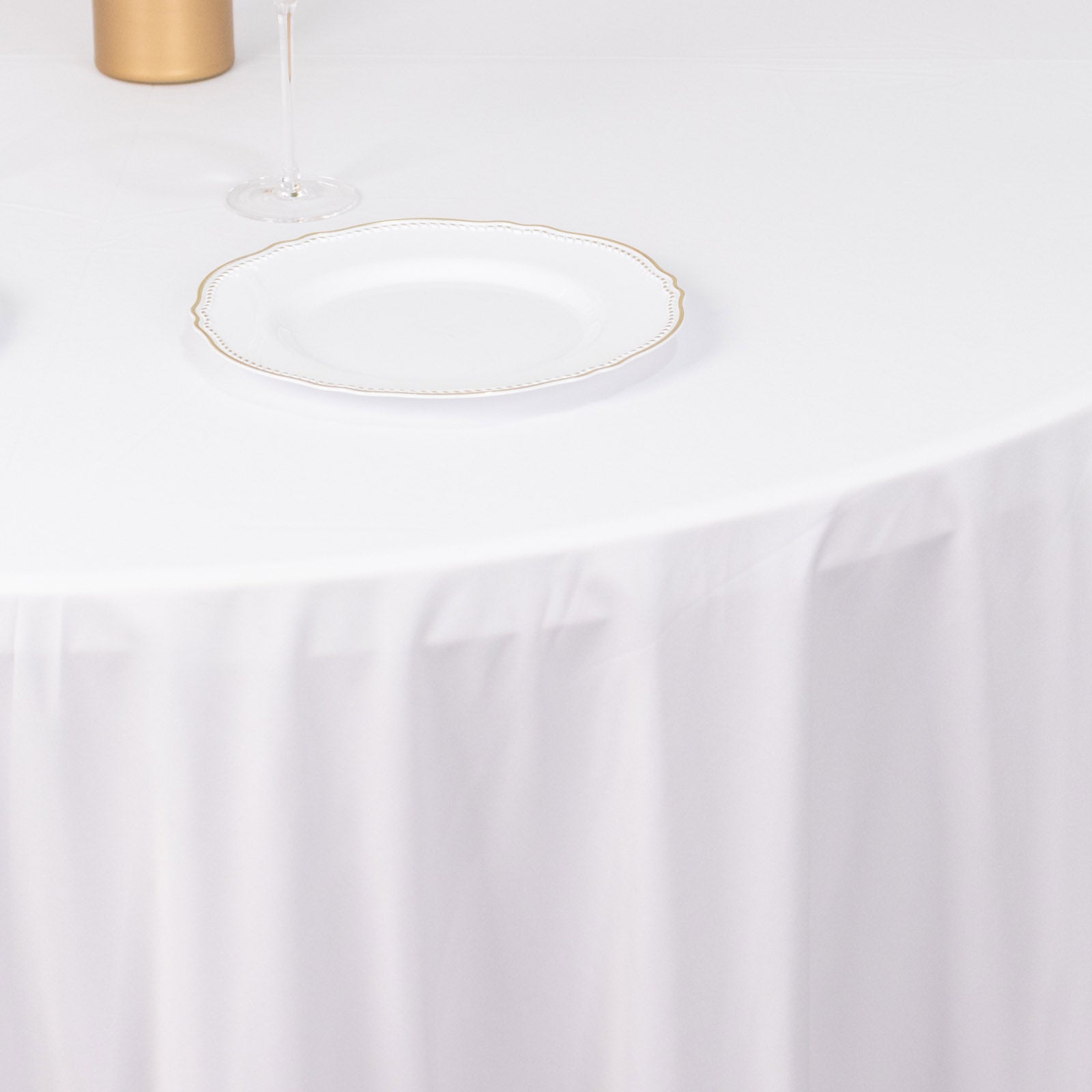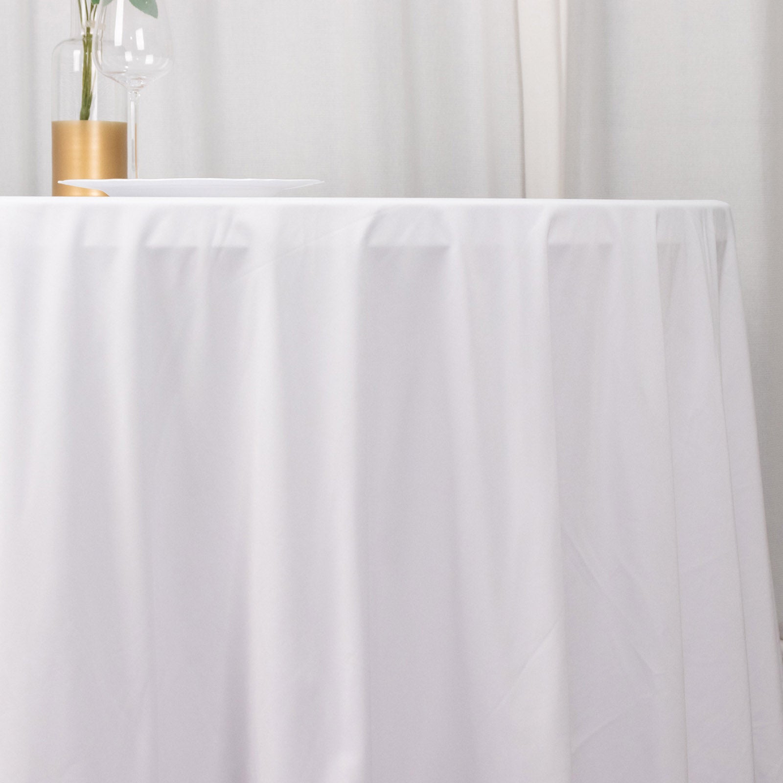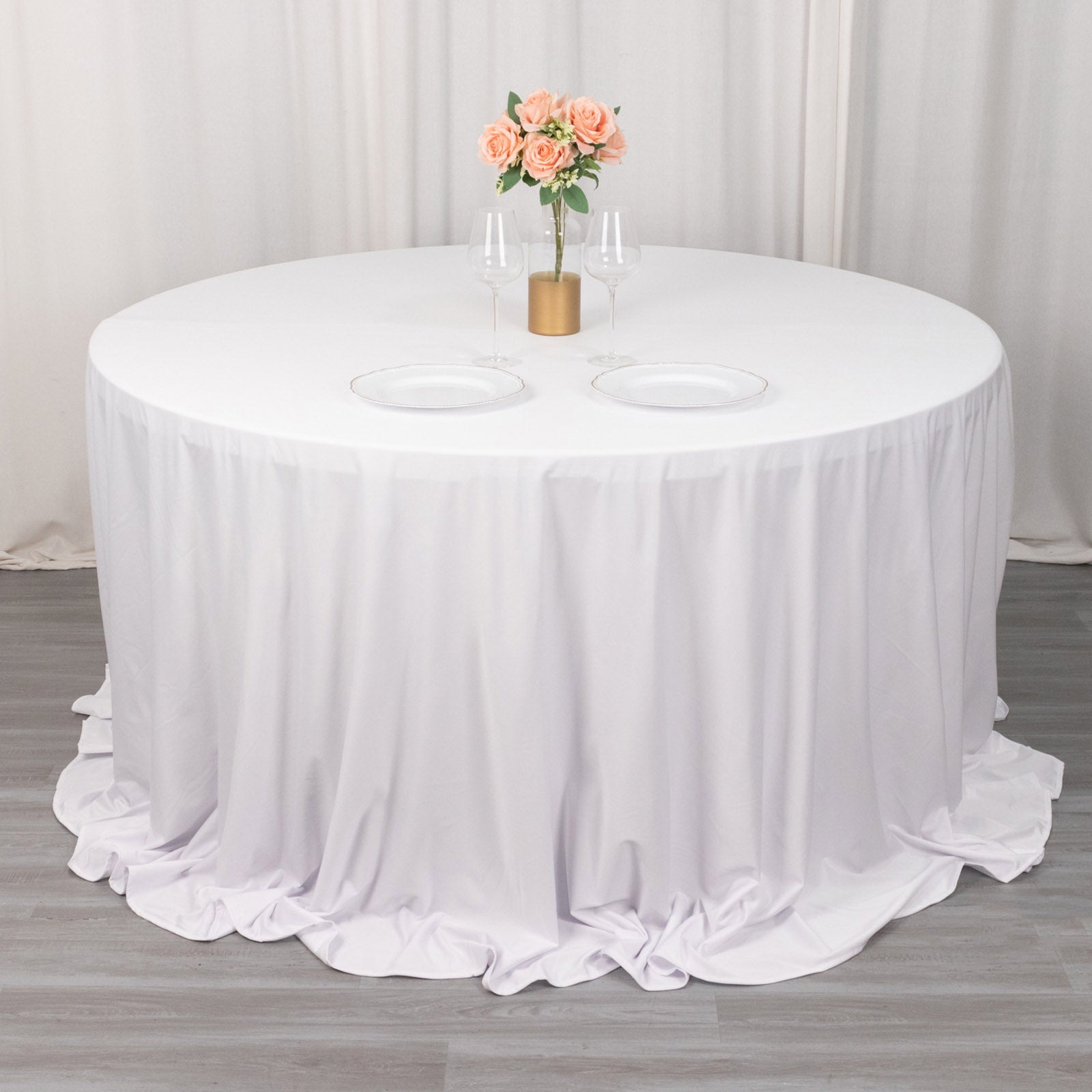 132" White Scuba Wrinkle Free Round Tablecloth, Seamless Scuba Polyester Tablecloth