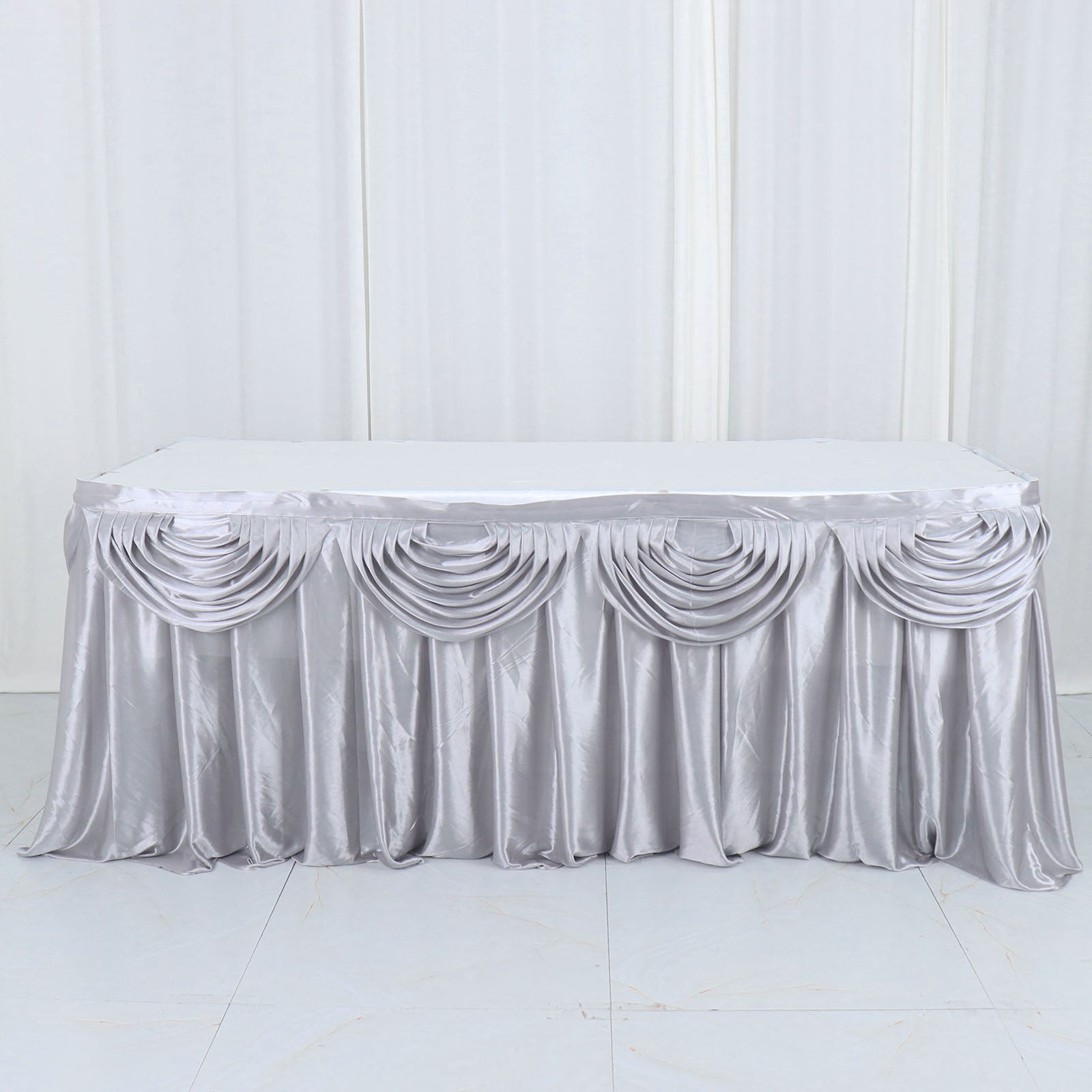 14ft Silver Pleated Satin Double Drape Table Skirt