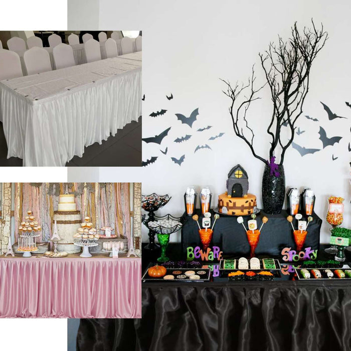 The 14FT White Pleated Satin Table Skirt is versatile for any event type. Whether you are hosting a wedding reception or a corporate event, this skirt adapts to your theme. Its pleated design adds texture and elegance to your tables.