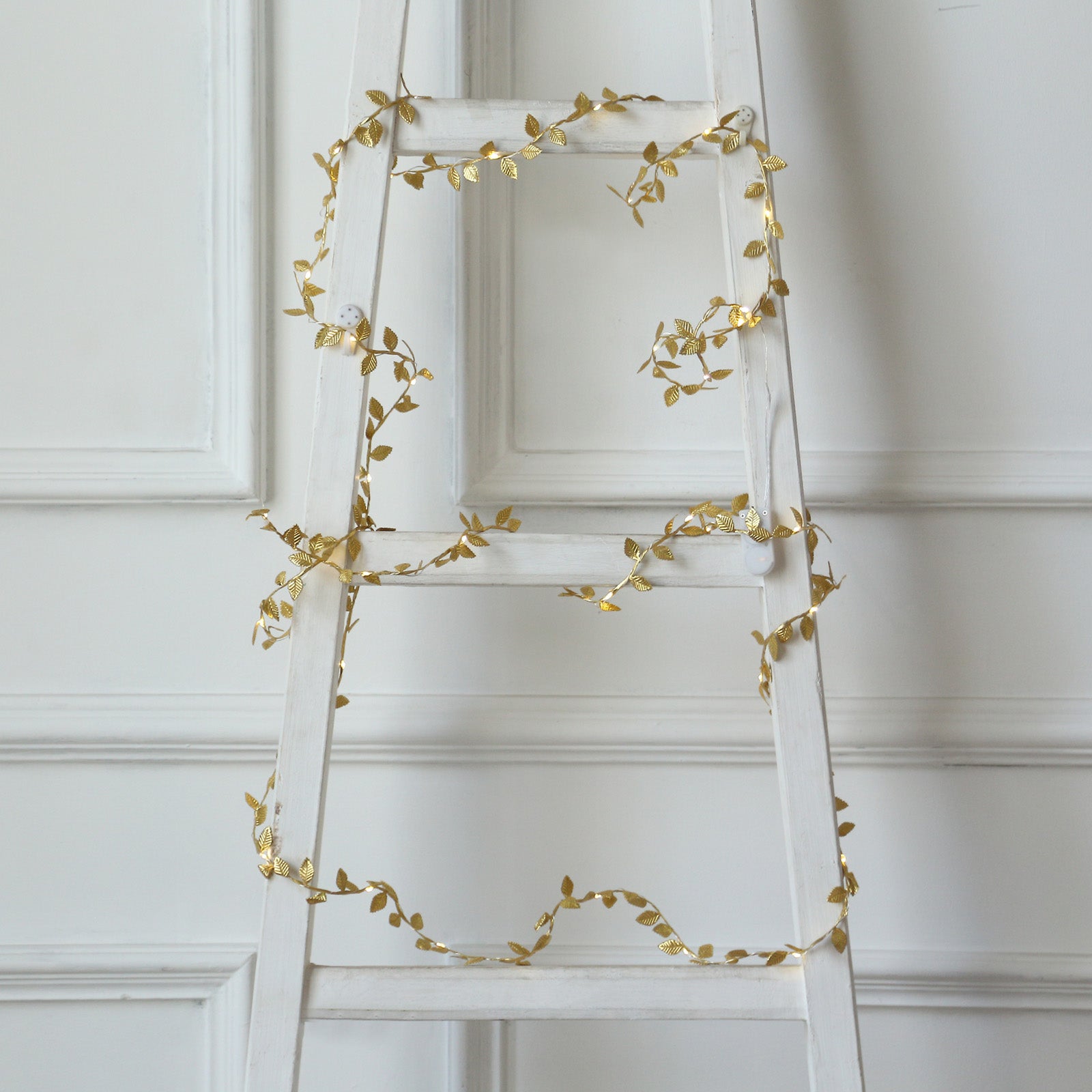 Transform your venue with our Warm White LED Metallic Gold Leaf String Lights. These lights create a captivating atmosphere. They are perfect for weddings, parties, or home decor.