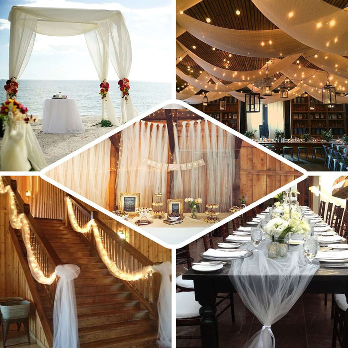 The 18"x100 Yards White Tulle Fabric Bolt is perfect for draping. Its sheer quality creates an ethereal look. Use it to adorn backdrops, tables, and chairs effortlessly.
