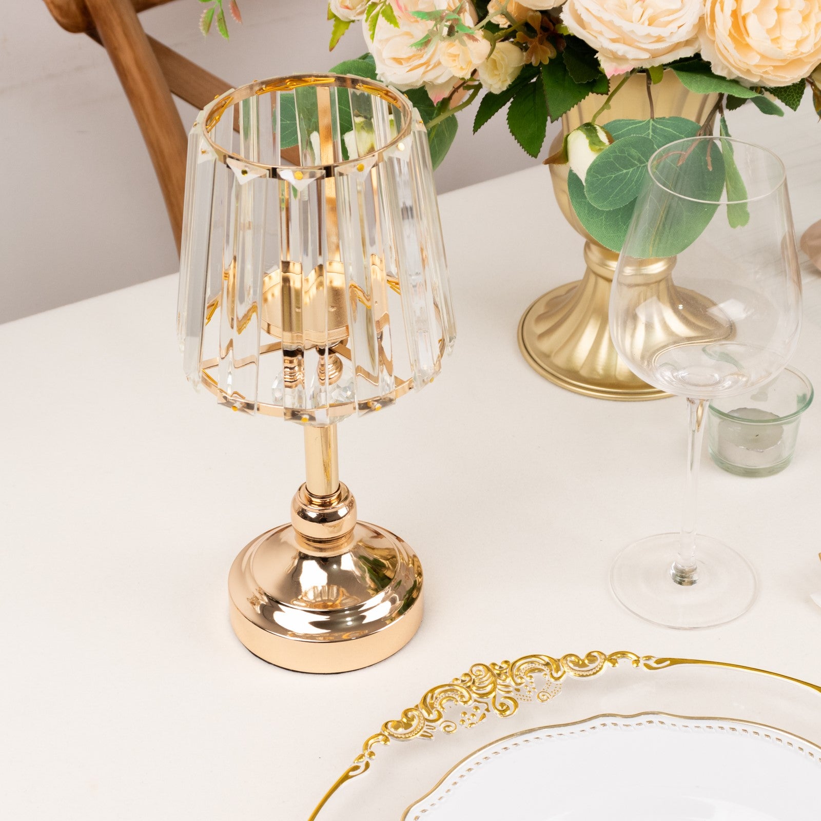 2-Pack 11" Crystal Pendant Candle Holders - Classic Empire Lamp Shade Style in Gold, Votive Candle Stand For Table Centerpieces