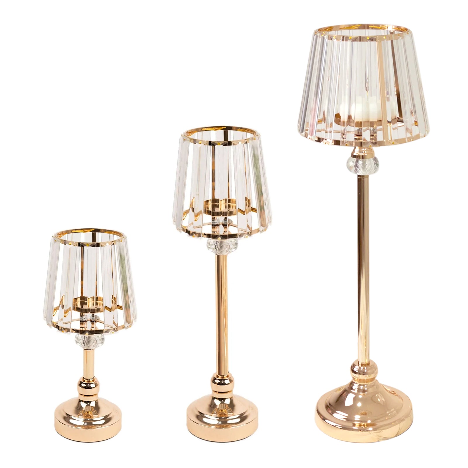 Each holder features a clear glass lamp shade, enhancing the candlelight's glow. This design not only secures your candles but also creates a stunning visual effect. The interplay of light through glass and gold creates a mesmerizing ambiance.