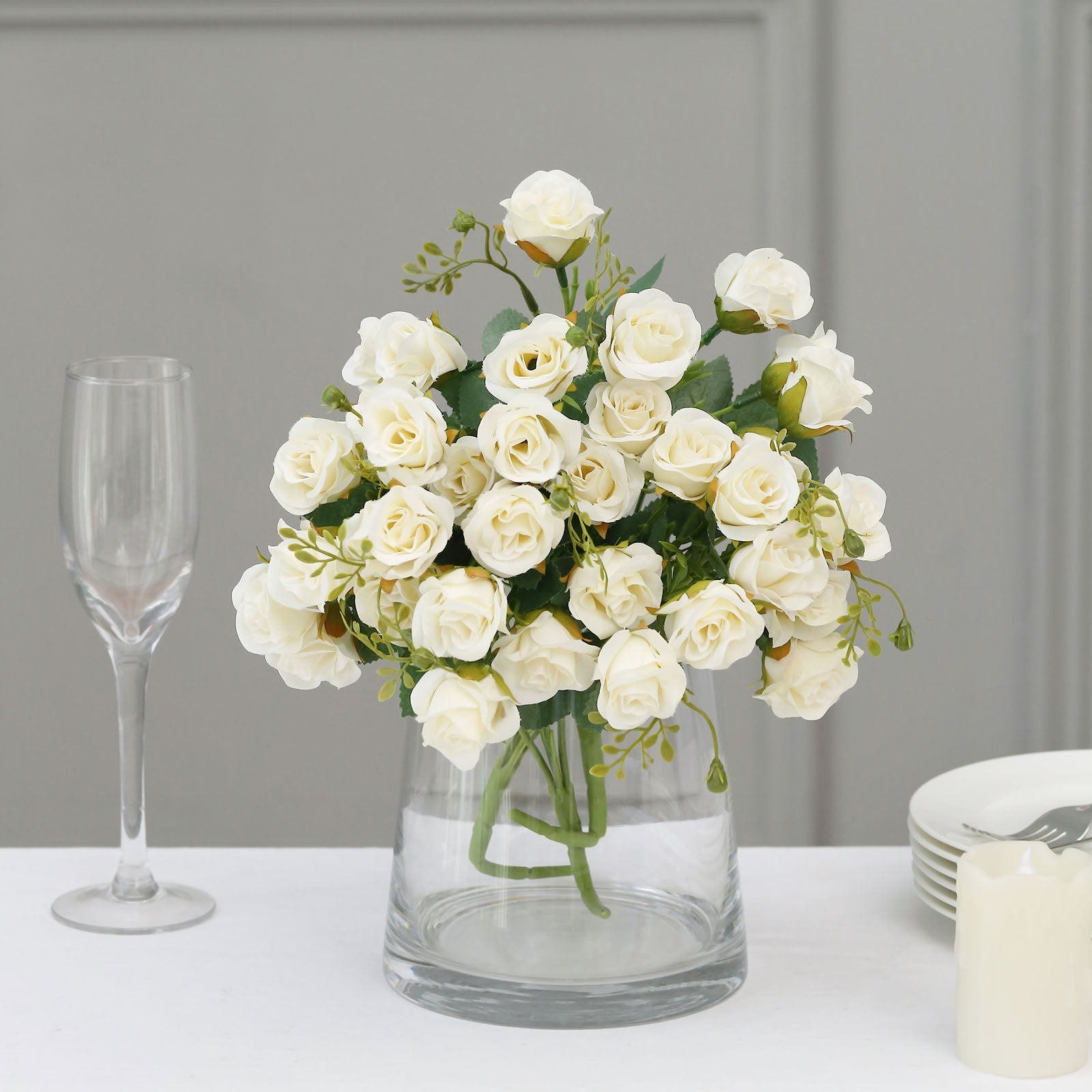 Imagine these beautiful bouquets gracing your dining table, serving as delightful centerpieces during family gatherings. They can also be paired with table runners or tablecloths to create a cohesive look. The soft ivory color complements various color schemes, making them a must-have for any event.