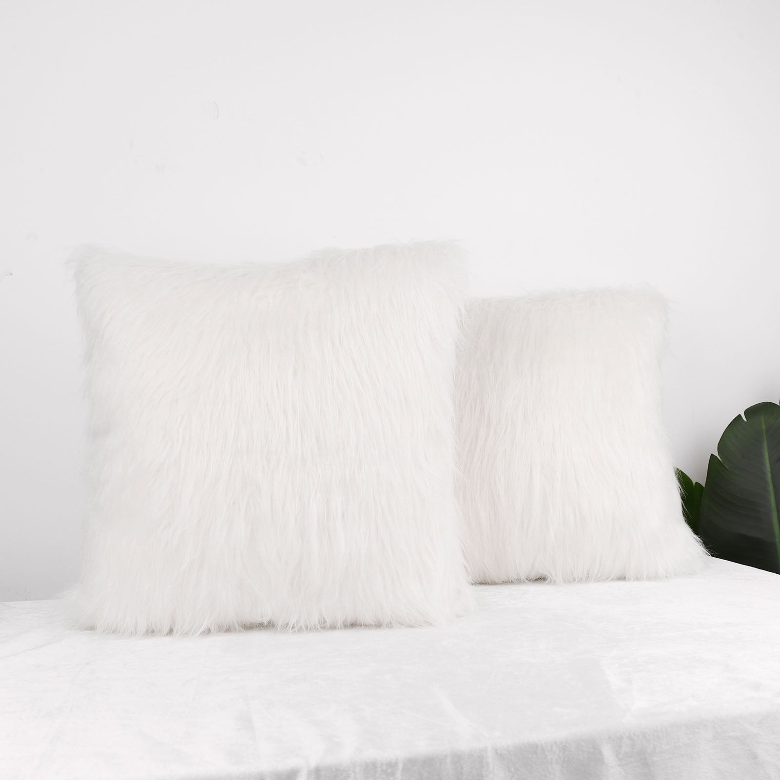 2 Pack | 18" White Faux Fur Sheepskin Throw Pillow Cases, Square Pillow Covers