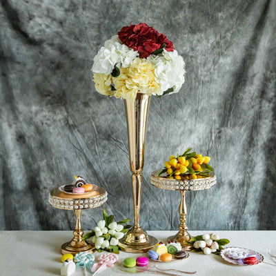 2 Pack 29" Gold Metal Trumpet Vases Set, Tall Floral Vase for Flower Arrangements & Table Centerpieces