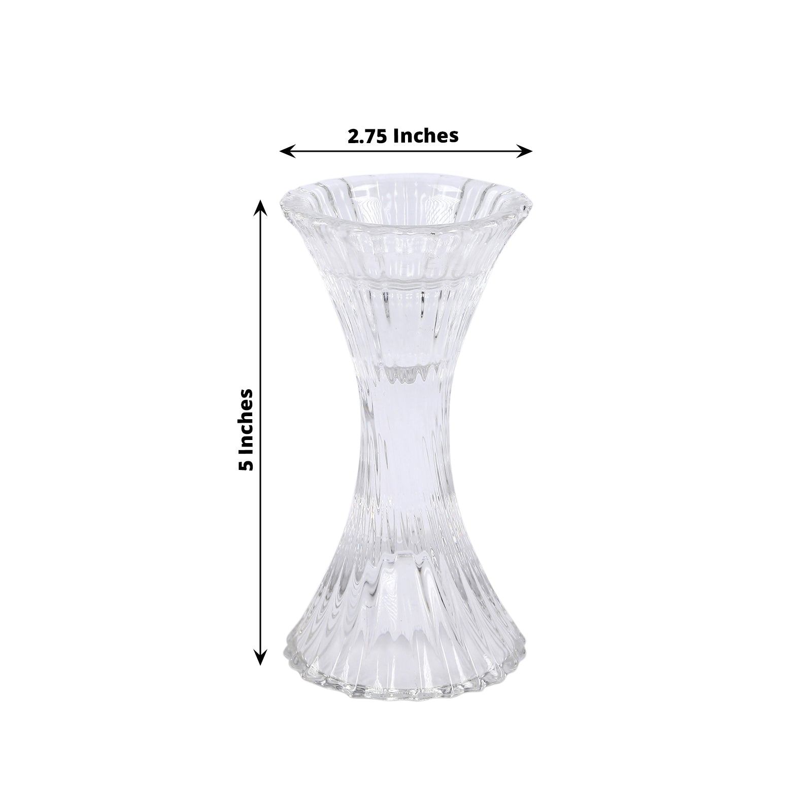 Our 5" Clear Crystal Hour Glass Taper Candle Holders add elegance to any event. Their hourglass shape is timeless and captivating. The clear crystal body enhances the beauty of flickering flames, creating a warm glow.
