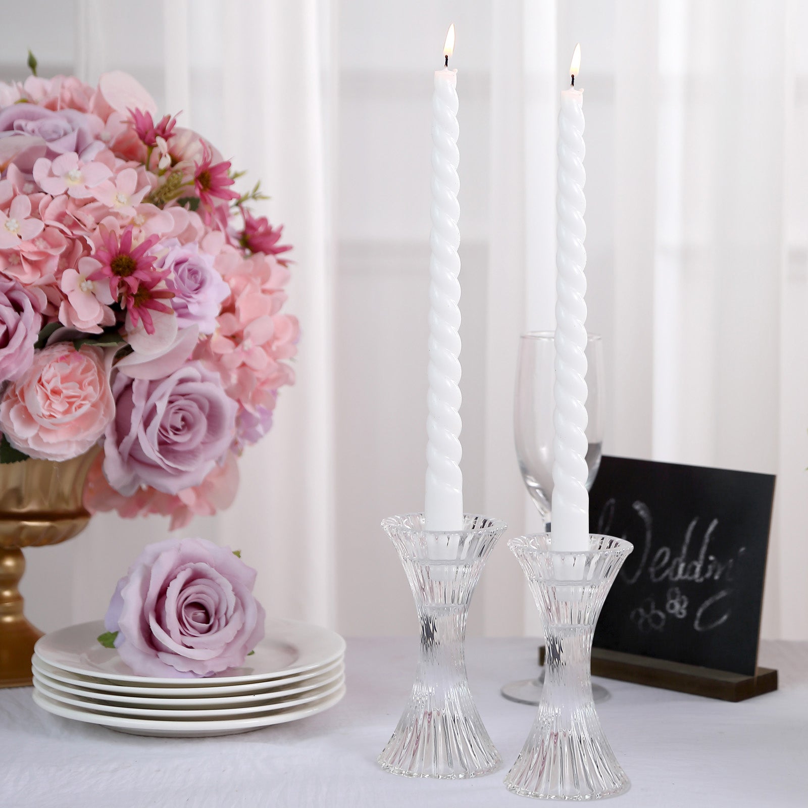 Additionally, candle holders enhance the overall décor of your event. They add height and visual interest to table settings. Incorporating them alongside table linens and other décor items creates a polished look.