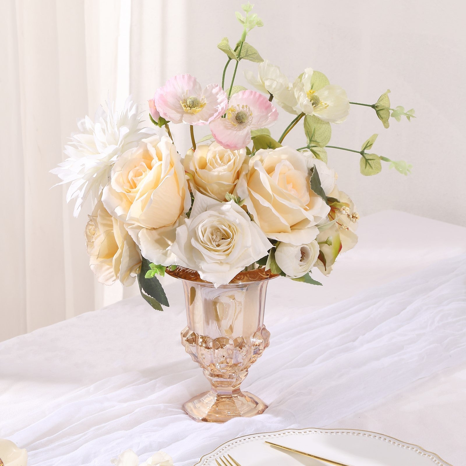 The versatility of these vases extends beyond formal events. Use them for birthday parties, anniversaries, or casual gatherings. They can also serve as decorative elements, holding floating candles or fairy lights. The Classic Roman Urn Style Amber Glass Pedestal Vases are more than just vases; they are a stunning statement piece for any occasion.