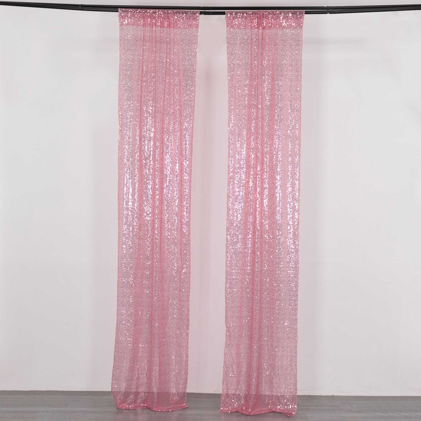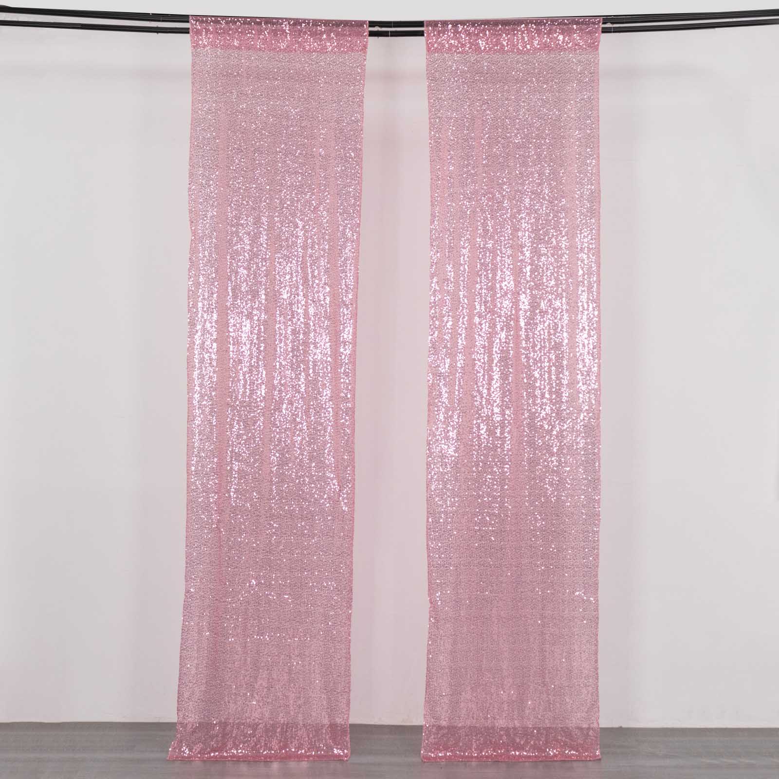 2 Pack Pink Sequin Event Curtain Drapes with Rod Pockets, Seamless Backdrop Event Panels - 8ftx2ft