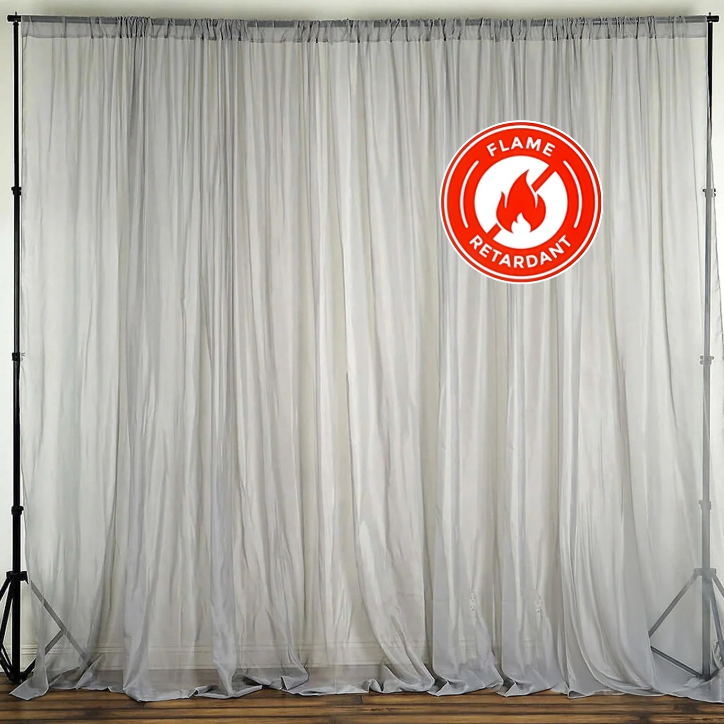 2 Pack Silver Sheer Chiffon Event Curtain Drapes, Durable Flame Resistant Organza Backdrop Event Panels With Rod Pockets - 10ftx10ft