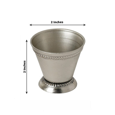 2" Small Silver Metal Beaded Rim Mint Julep Cups, Party Favor Jars