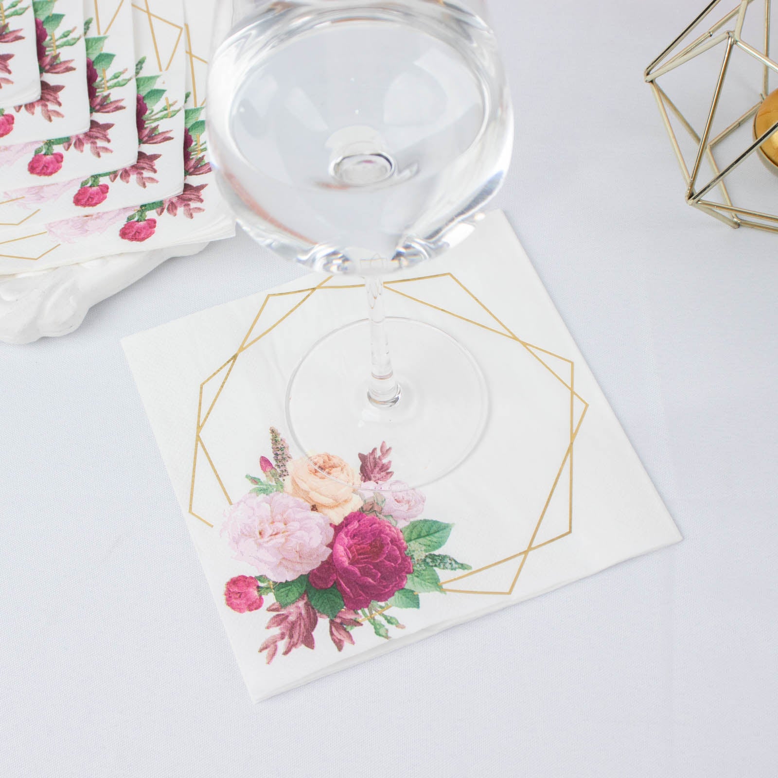 Incorporate these napkins into your event theme. For a rustic look, pair them with burlap table runners. For a more modern vibe, use them with sleek tablecloths. The floral design allows for endless possibilities in styling your event.