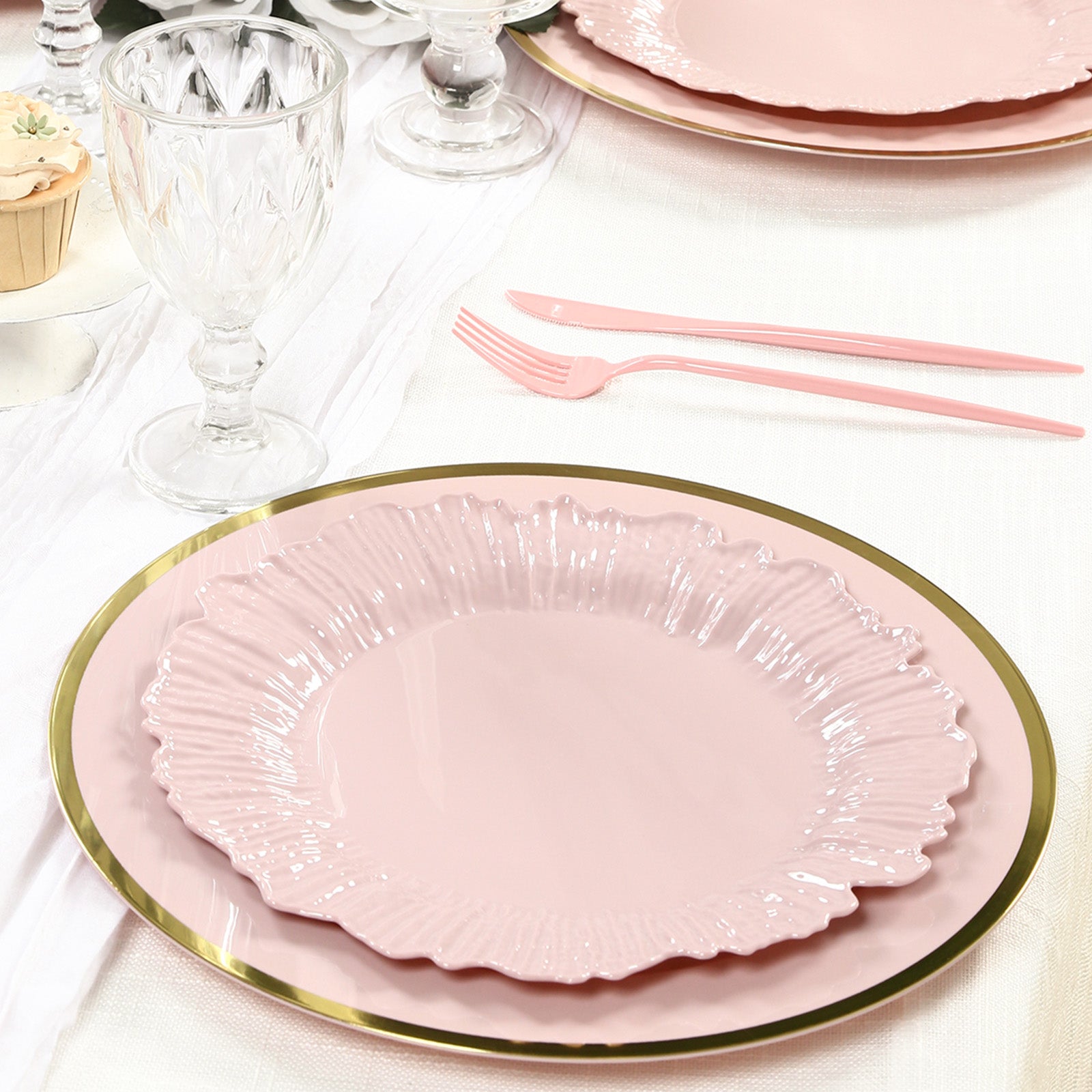 The blush color combined with the intricate reef design elevates the aesthetic of your event. Whether you’re hosting an elegant wedding, a chic birthday celebration, or a sophisticated dinner party, these plates provide a refined look that complements your decor. The design seamlessly blends with a variety of color schemes, from neutrals to more vibrant hues.