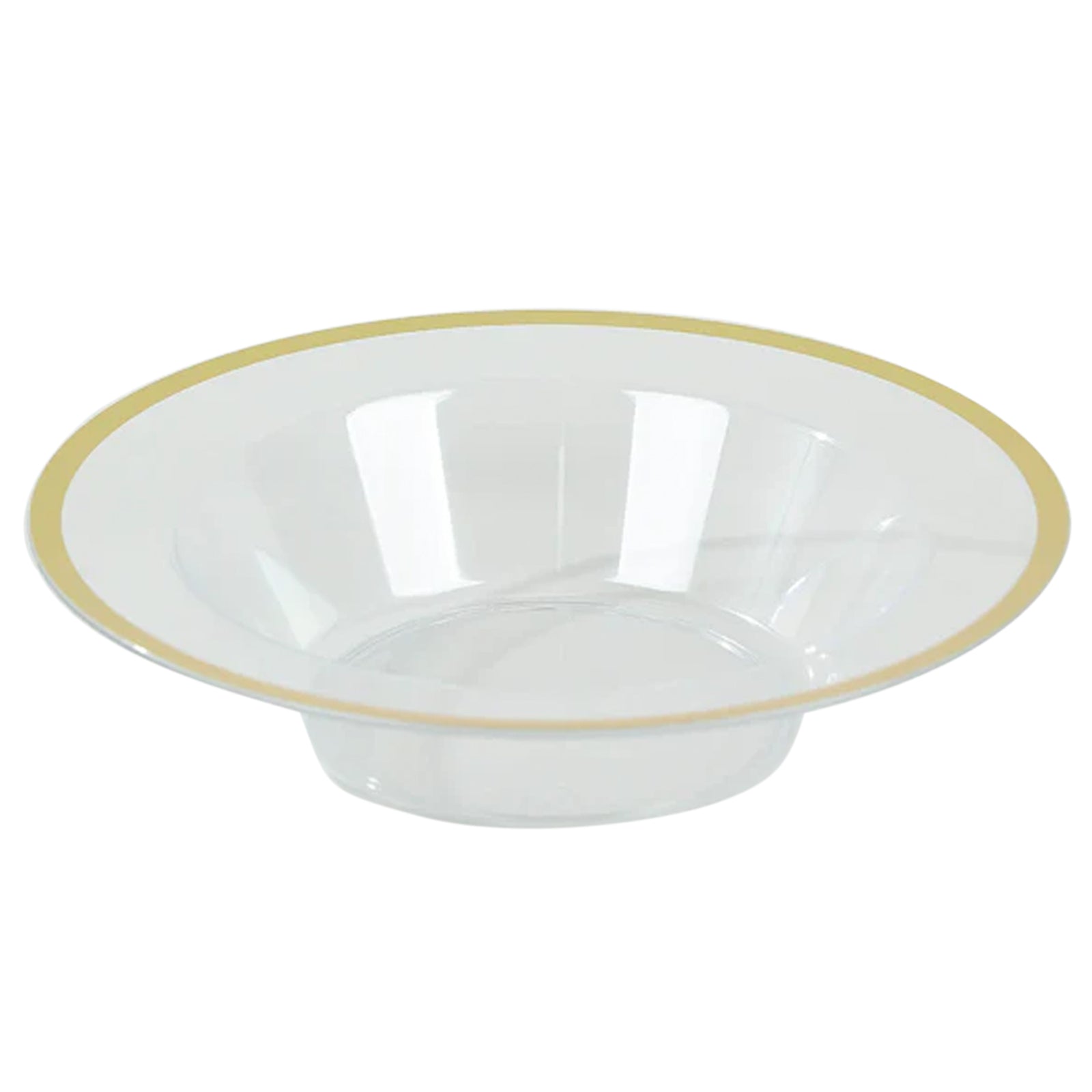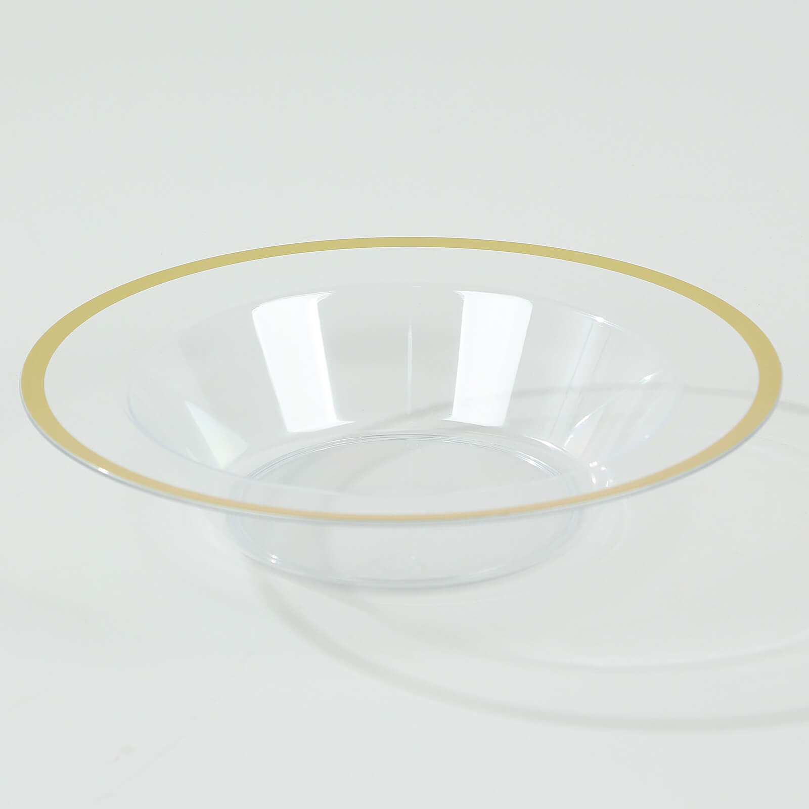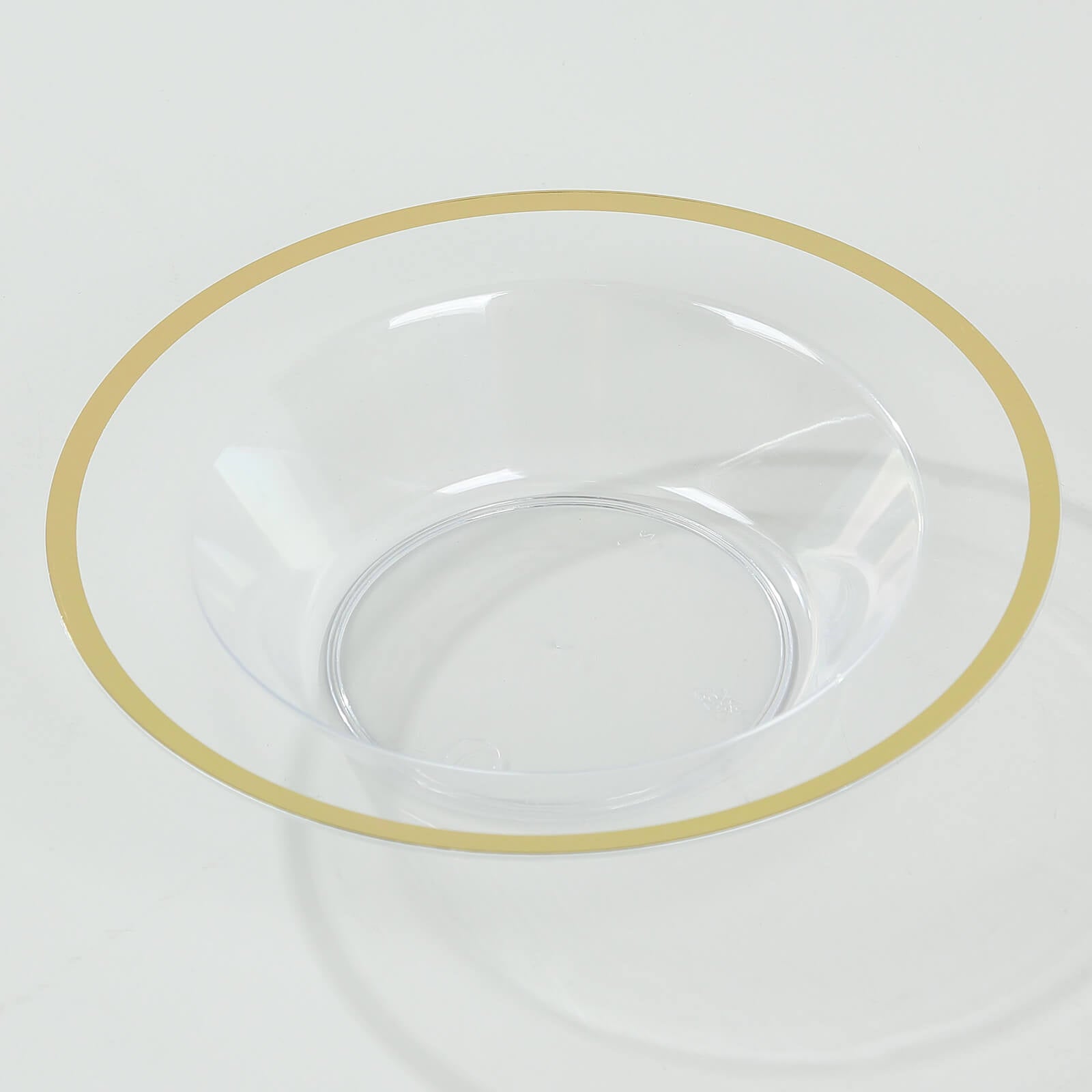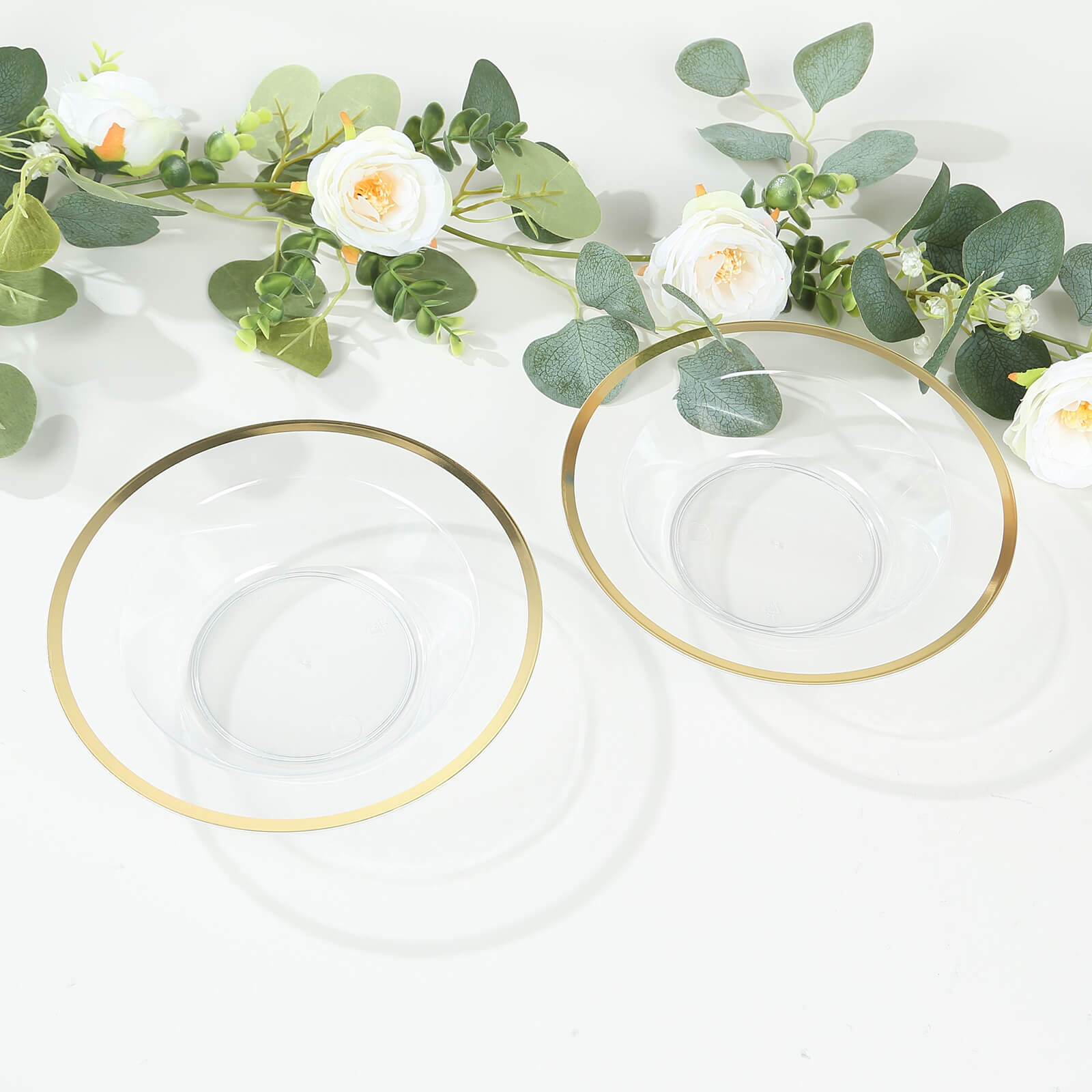 20 Pack Clear Disposable Salad Soup Bowls with Gold Rim, 12oz Round Plastic Dessert Serving Bowls