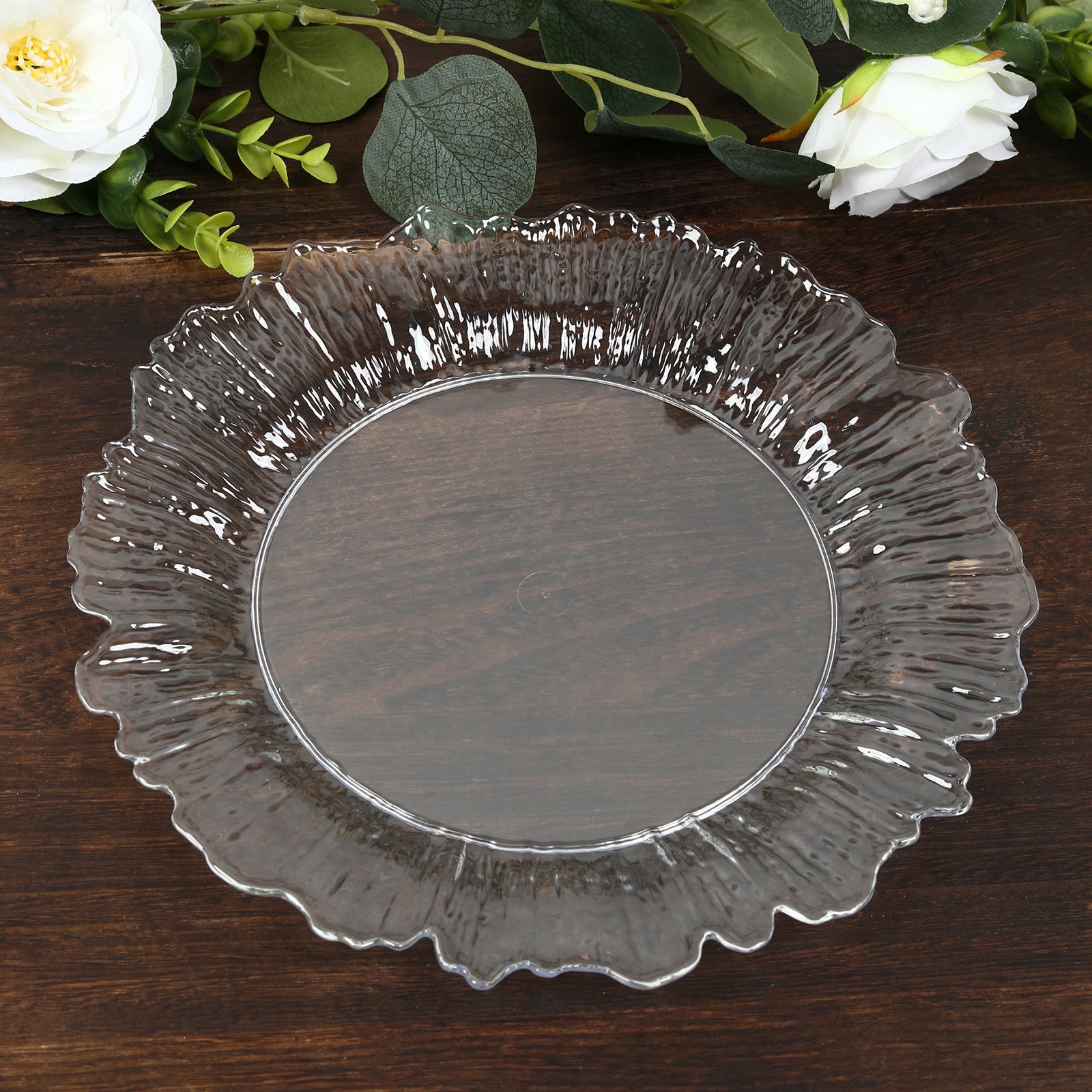 The clear construction combined with the intricate reef design elevates the aesthetic of your event. Whether you’re hosting an elegant wedding, a chic birthday celebration, or a sophisticated dinner party, these plates provide a refined look that complements your decor. The design seamlessly blends with a variety of color schemes, from neutrals to more vibrant hues.