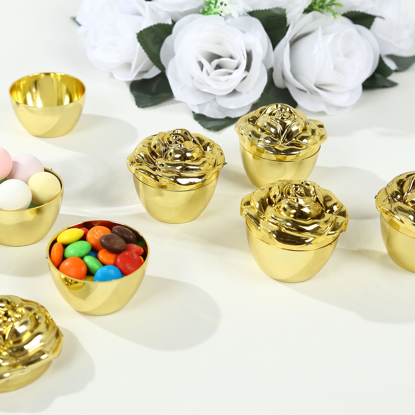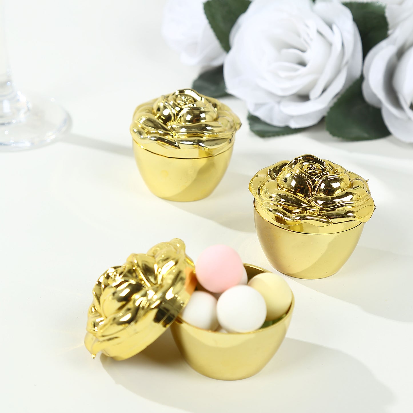 20 Pack Gold Vintage Rose Plastic Favor Boxes With Lids, 2" Small Trinket Jewelry Keepsake Gift Boxes