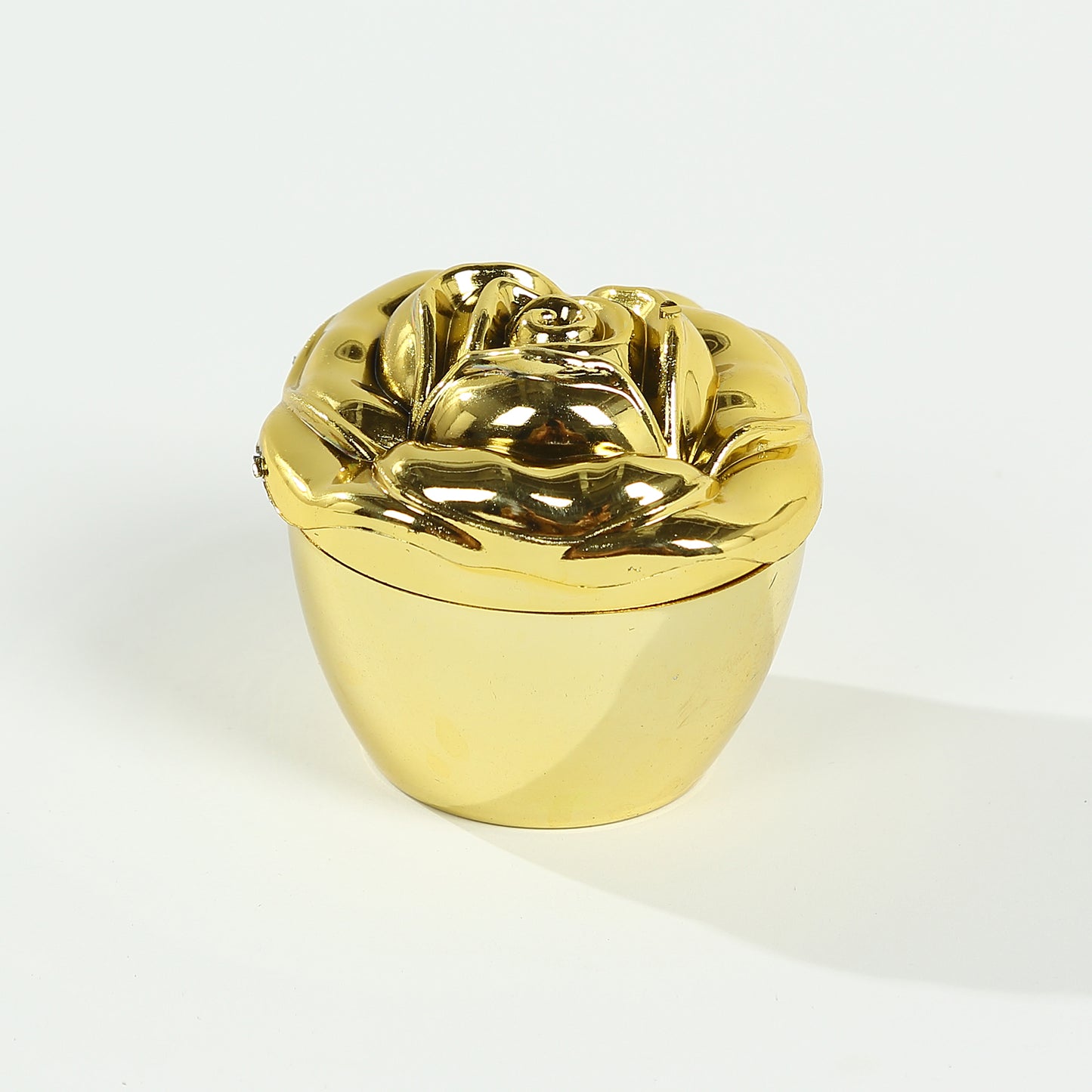 Gold Vintage Rose Favor Boxes are small plastic containers designed for gifting. They feature a beautiful rose pattern and a luxurious gold finish. These boxes are perfect for holding jewelry, candies, or small keepsakes.