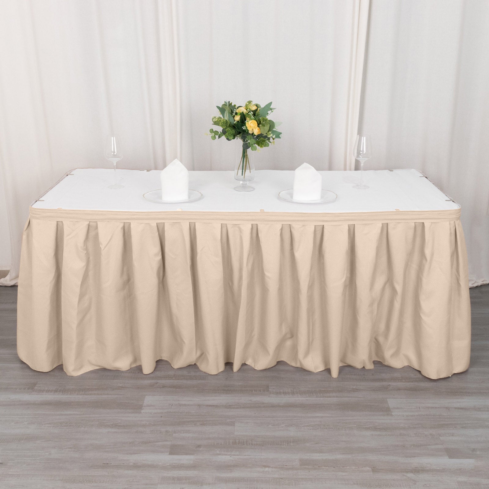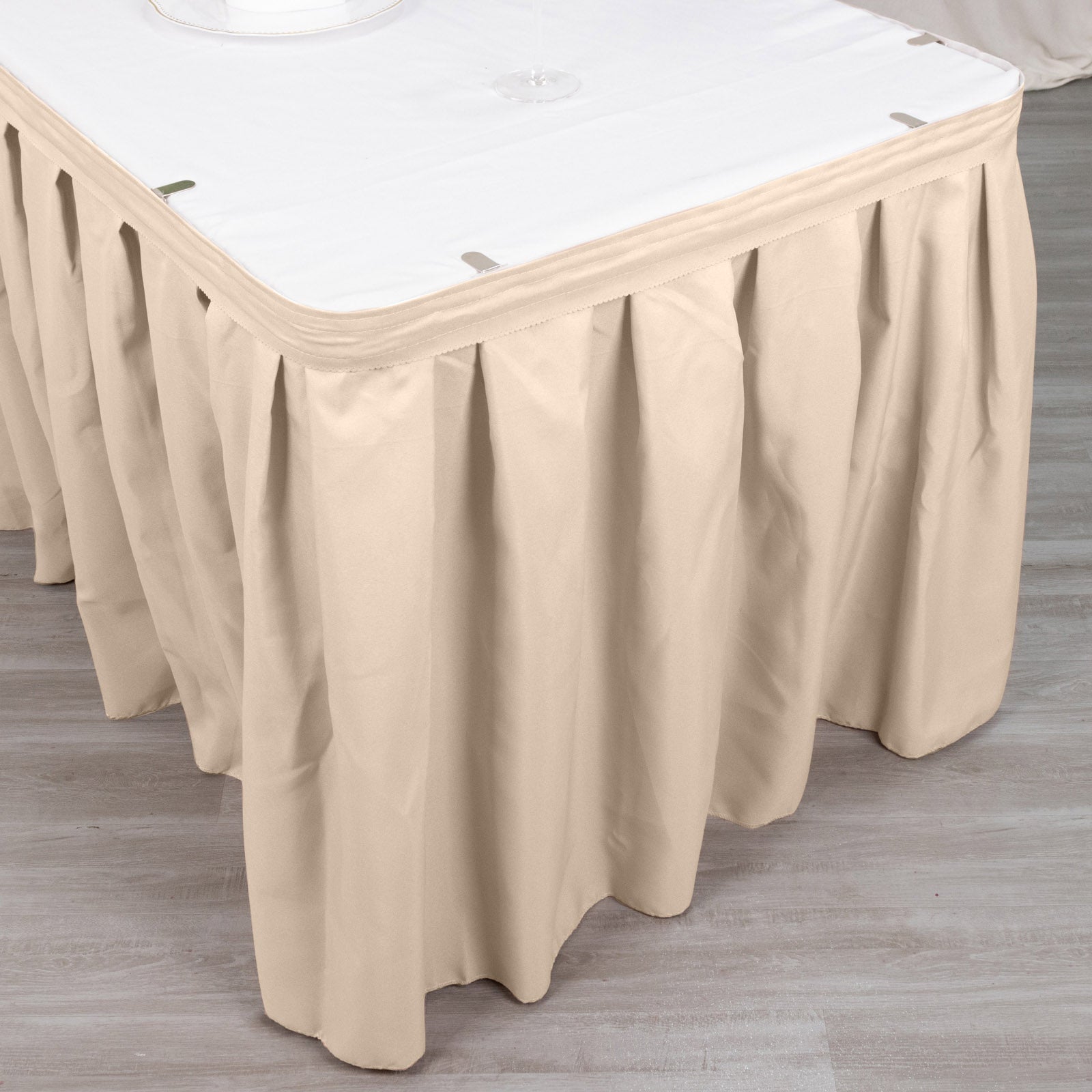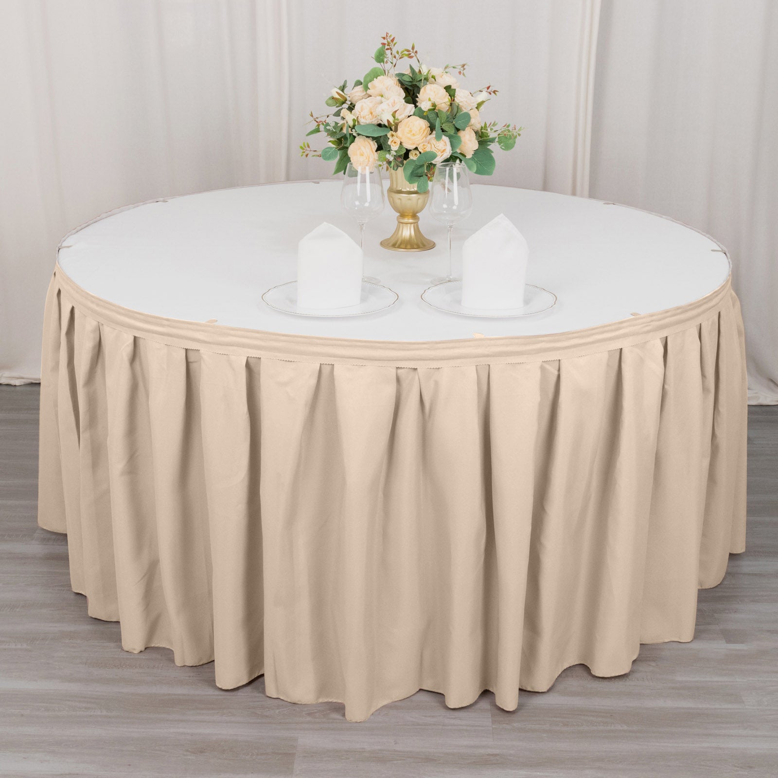 21ft Nude Pleated Polyester Table Skirt, Banquet Folding Table Skirt