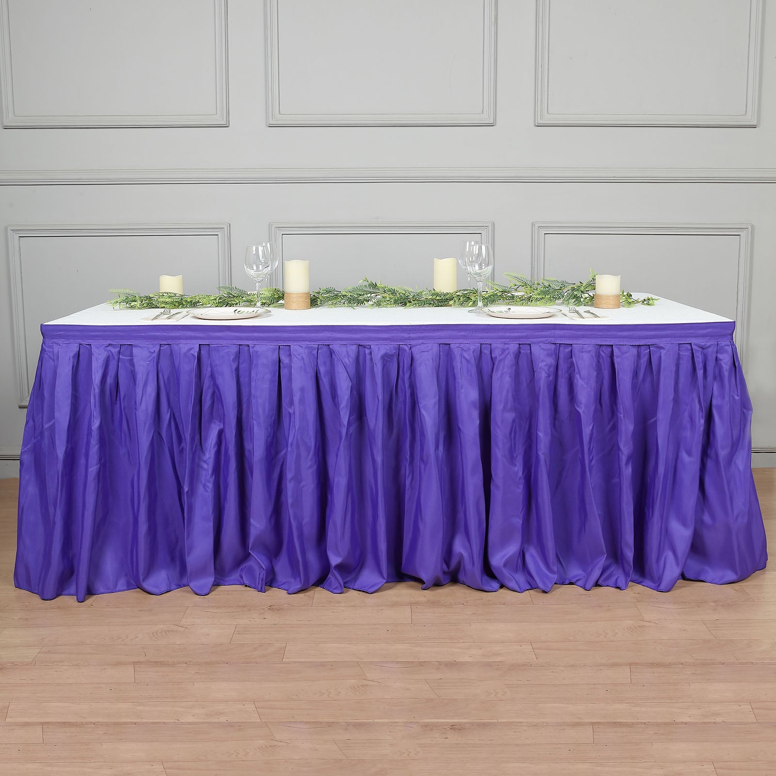21ft Purple Pleated Polyester Table Skirt, Banquet Folding Table Skirt