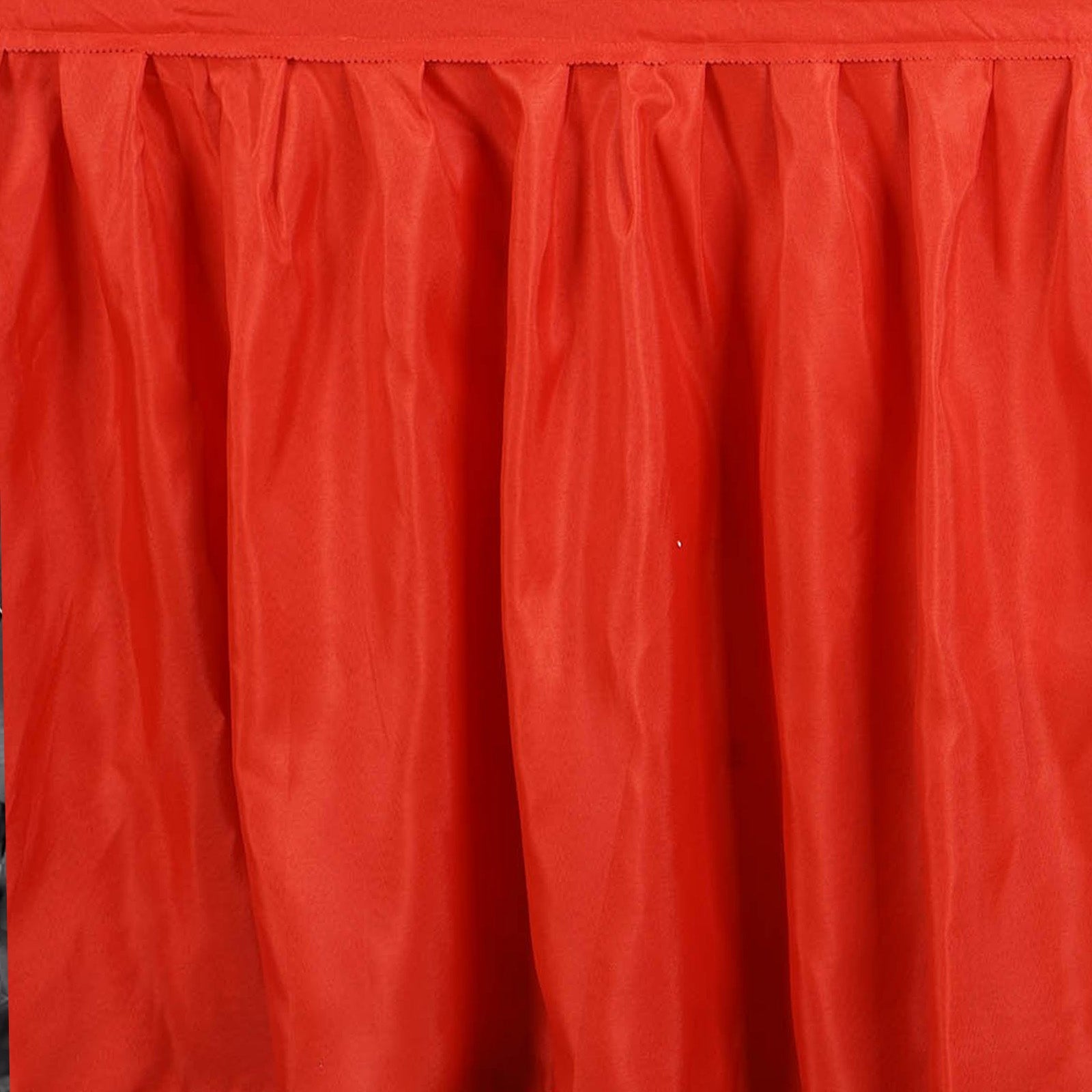 Polyester table skirts, like our 21ft Red Pleated version, offer numerous advantages. They are known for their durability and resistance to wrinkles, making them ideal for repeated use. This quality ensures that your tables always look fresh and inviting.