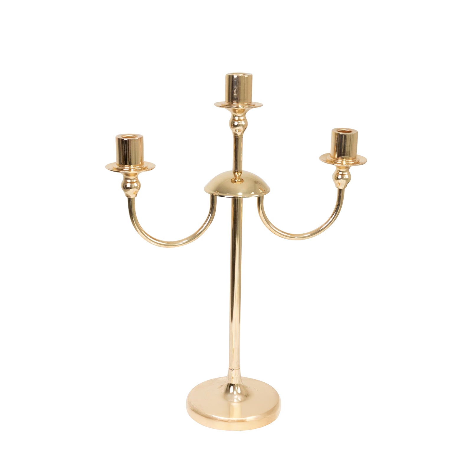 Using a gold candelabra in your event décor adds both height and sophistication. Place it on dessert tables, buffet spreads, or banquet setups to create a focal point that draws attention. Pairing it with Lighting and Candles or complementary décor items can enhance the ambiance and establish a welcoming atmosphere. This versatile 3-arm candelabra works well with both floral arrangements and modern table settings, making it a valuable piece for multiple occasions.