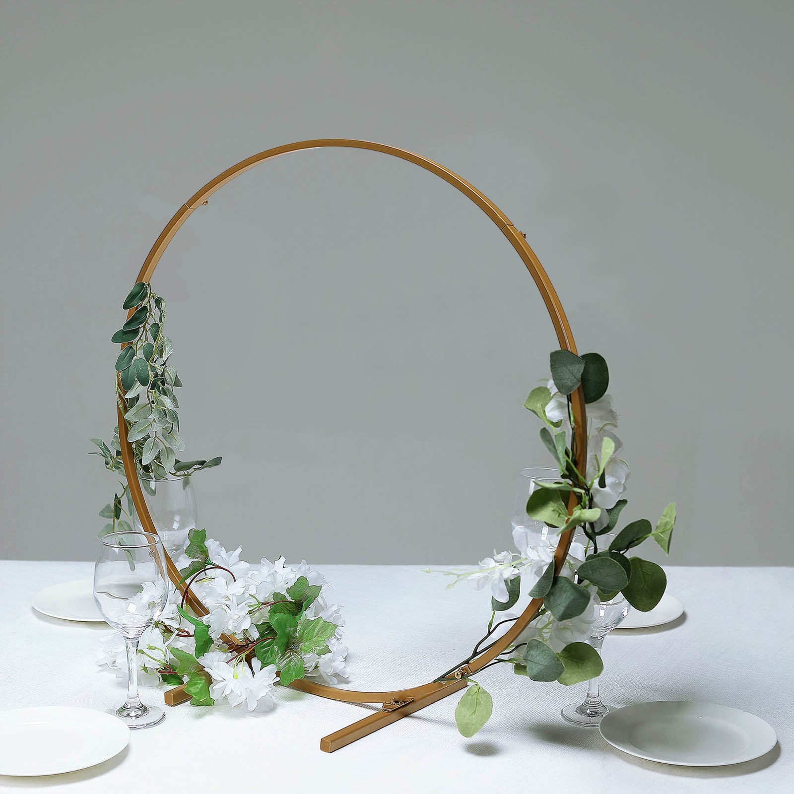 24" Gold Round Arch Wedding Centerpiece, Metal Hoop Wreath Tabletop Decor