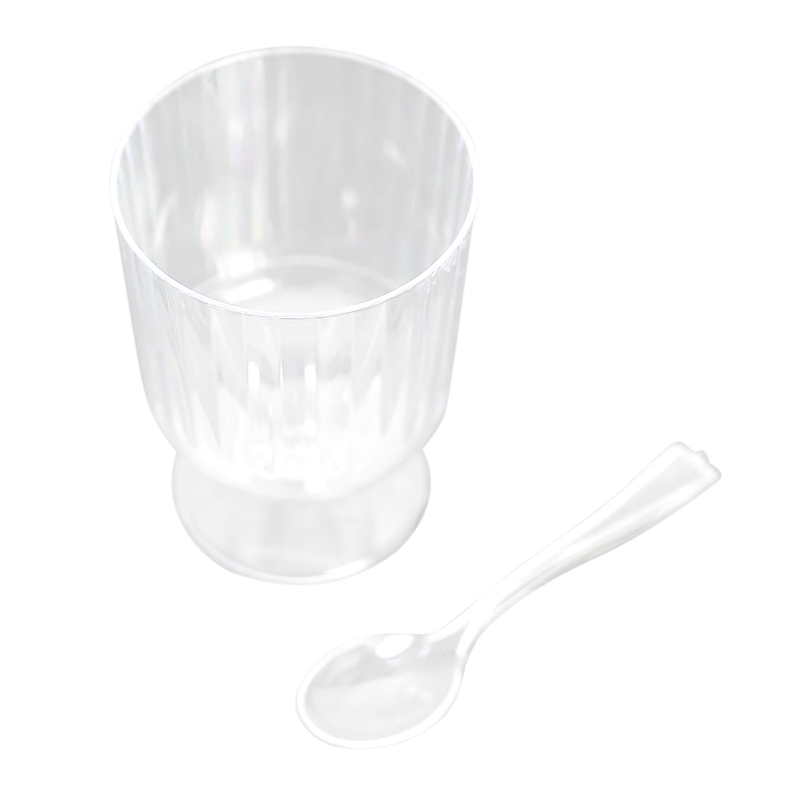 24 Pack | 5oz Clear Mini Ribbed Pedestal Plastic Dessert Cups With Spoons, Disposable Snack Cup Spoon Sets