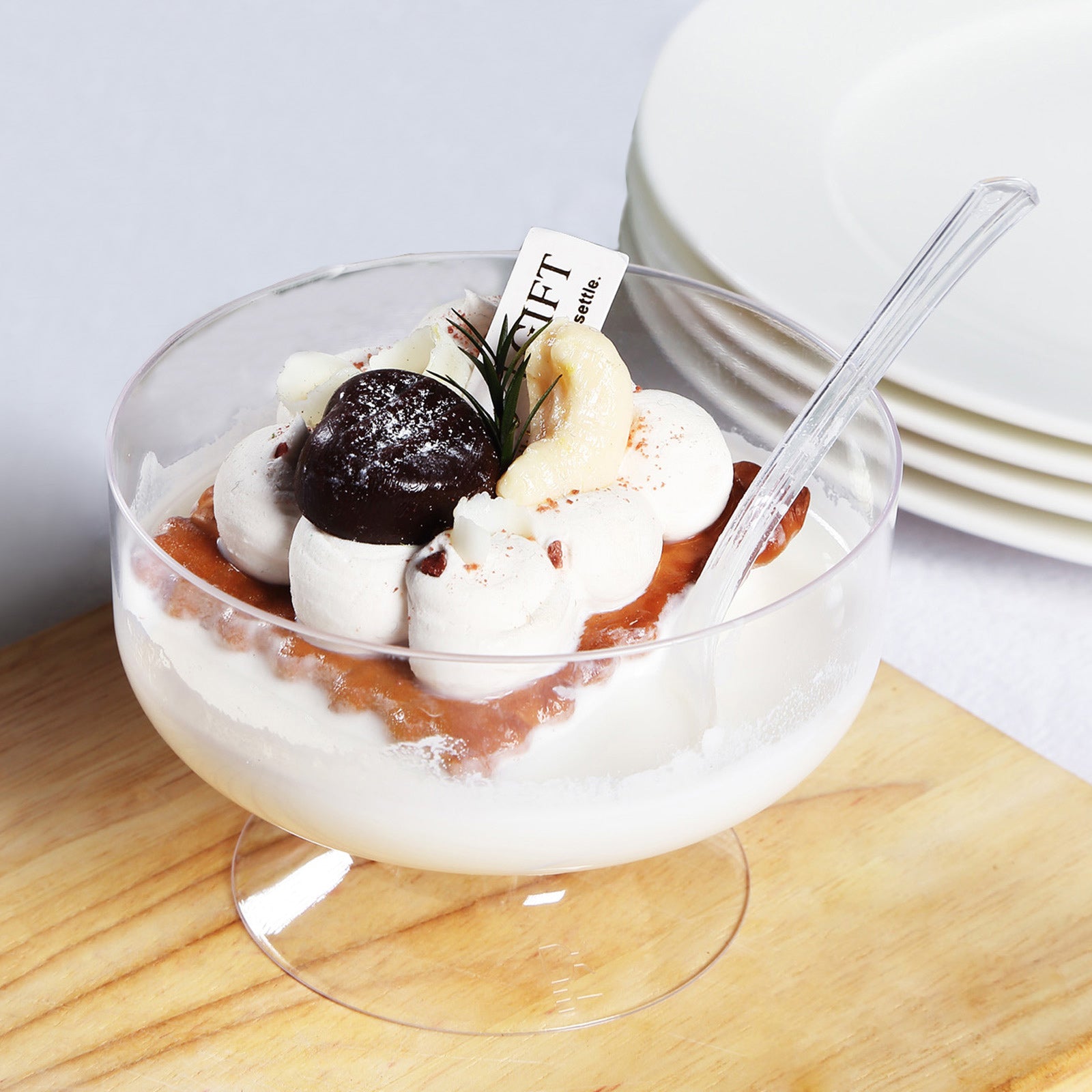 These disposable dessert cups come with matching spoons, enhancing the overall dining experience. Made from durable plastic, the spoons are sturdy and perfectly sized for indulging in your desserts. This thoughtful addition ensures your guests can enjoy their treats effortlessly.