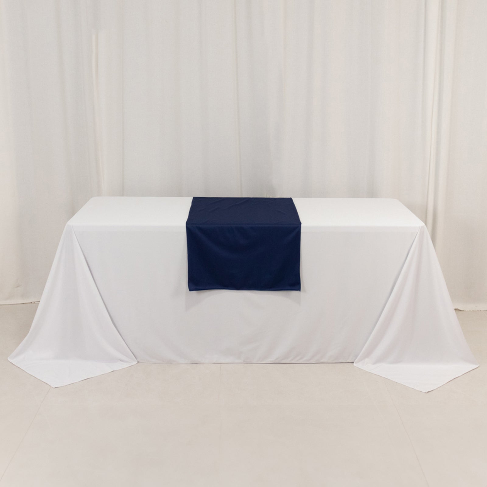 Our Navy Blue Wide Polyester Table Runner is the perfect blend of durability and elegance, designed to elevate any trade show, exhibition, or special event. Made from premium polyester, this table runner boasts a rich navy blue hue that adds a touch of sophistication to your display.