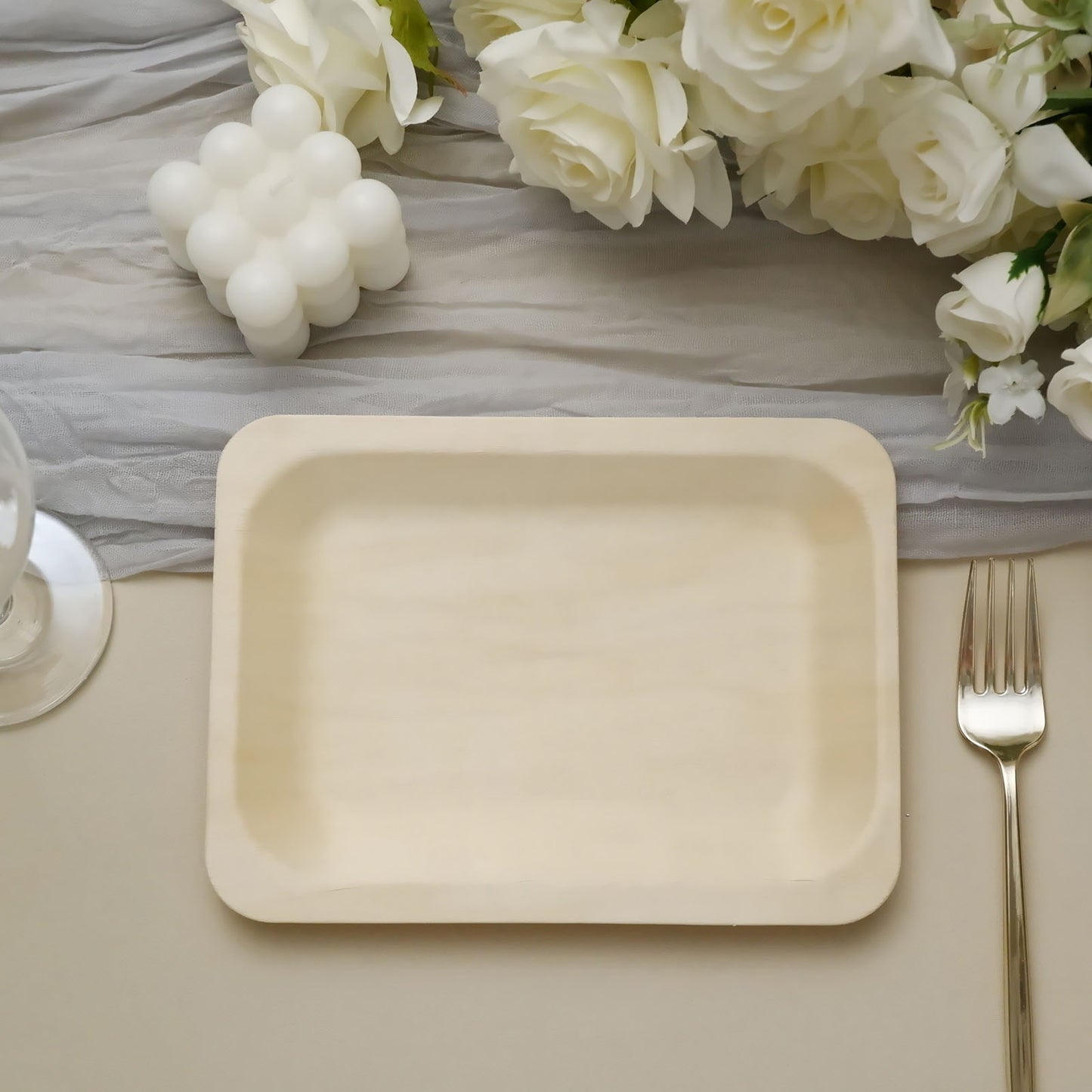 25 Pack | 5"x8" Eco Friendly Birchwood Wooden Dessert Serving Plates