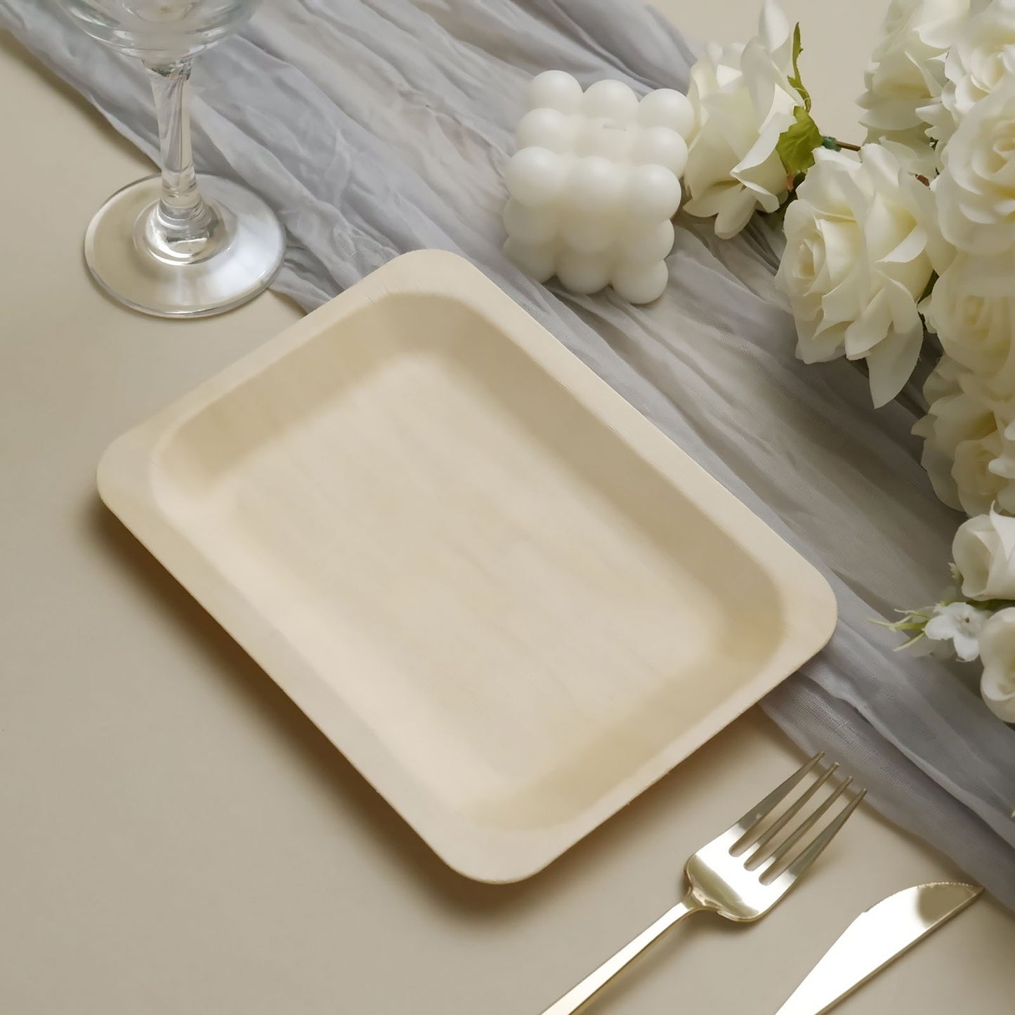 Our eco-friendly birchwood dessert serving plates are a stylish choice for any event. Their modern quadrangular shape offers a contemporary look. The natural wooden hue enhances the elegance of your table setting, making them perfect for weddings or parties.