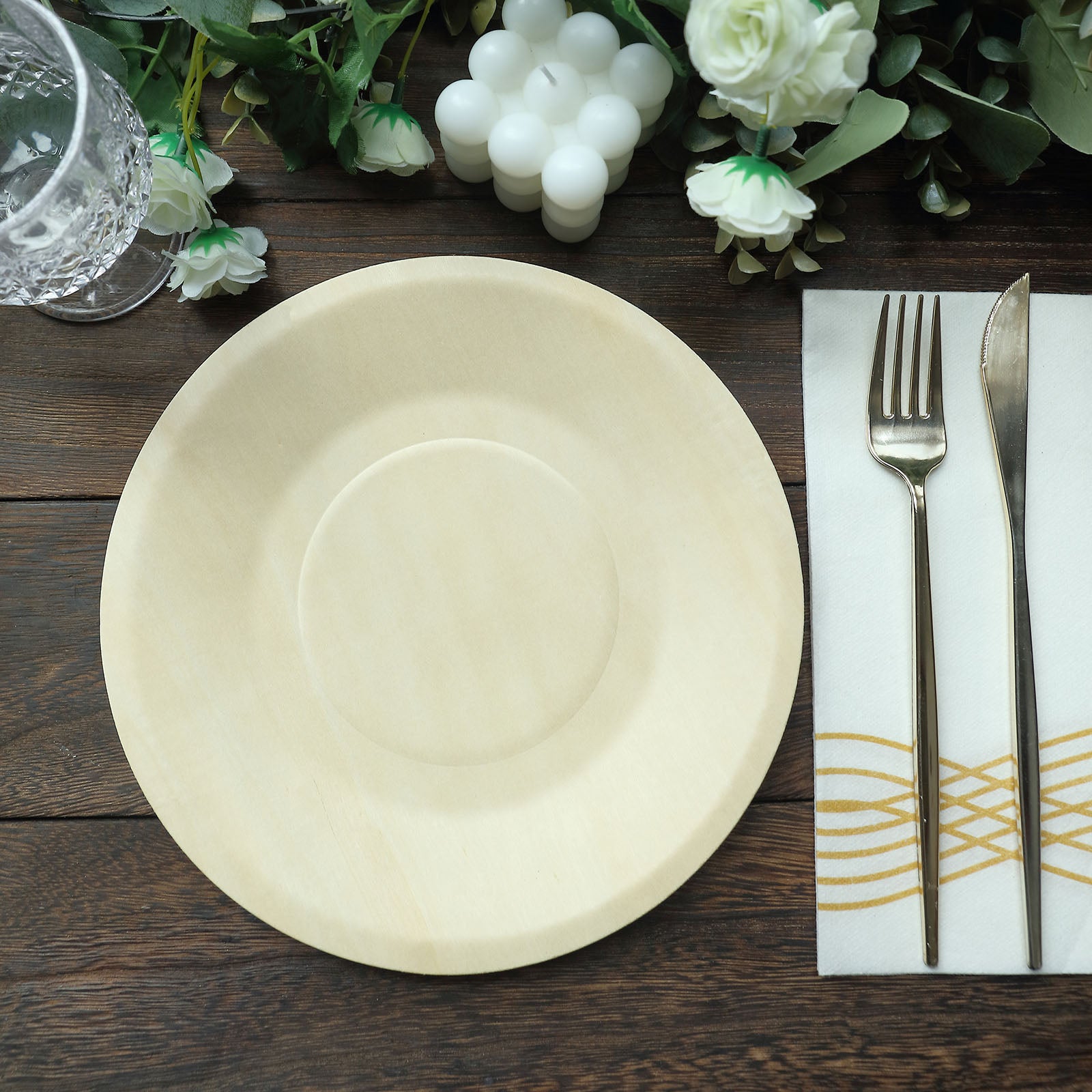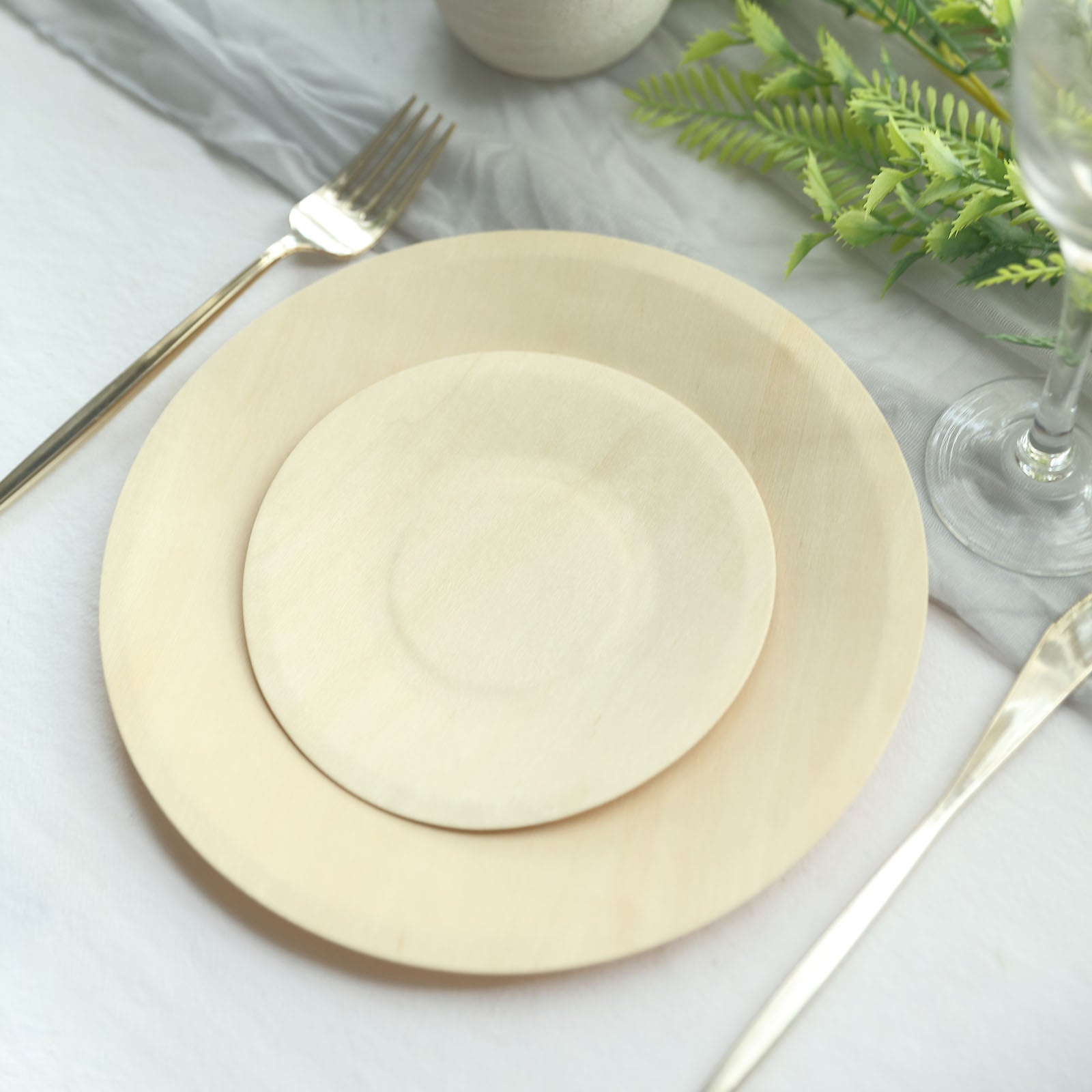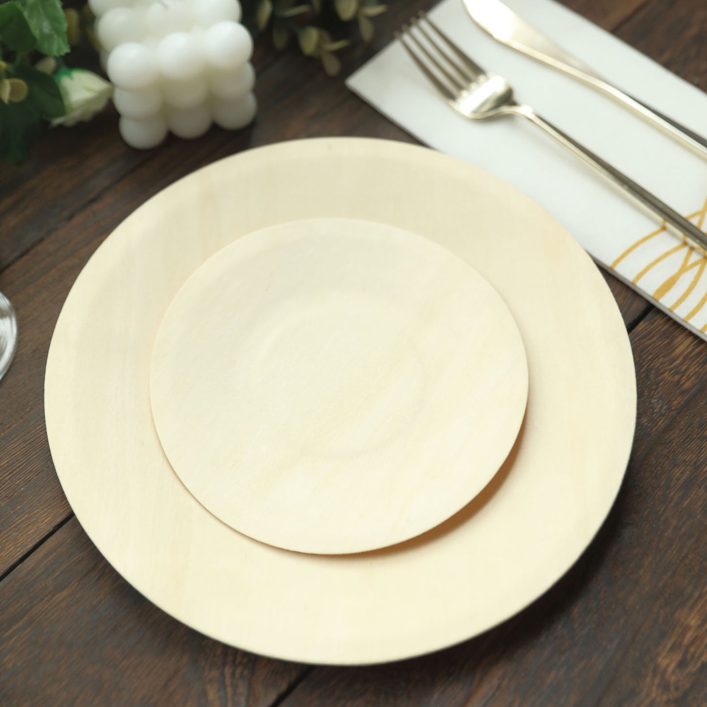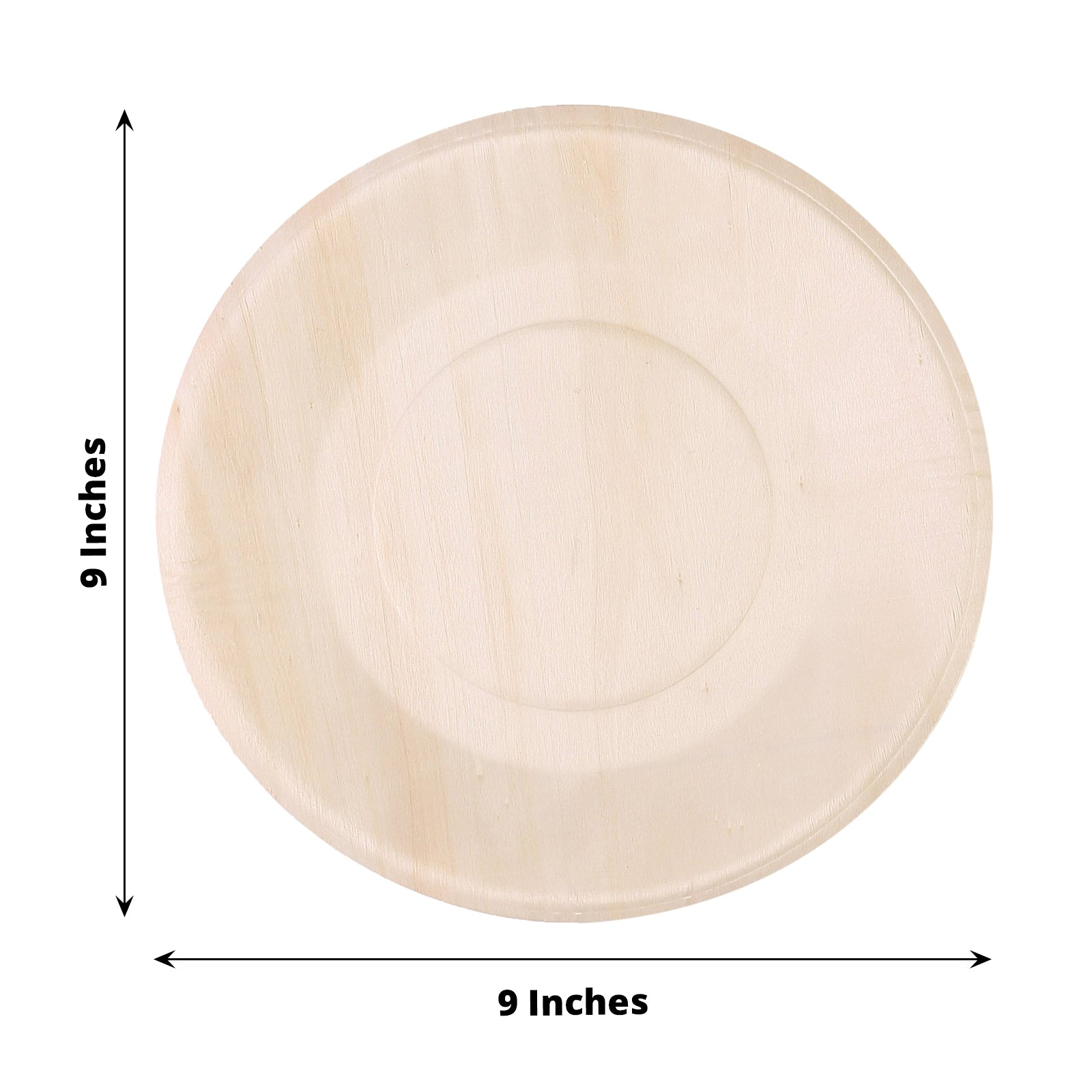 25 Pack | 9" Eco Friendly Natural Birchwood Wooden Round Dinner Plates