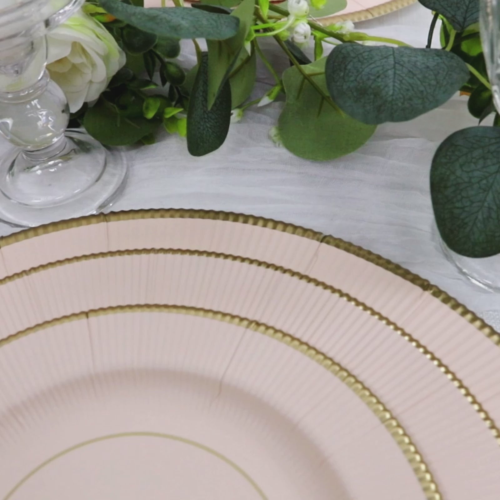 Disposable Round Charger Plates 13" Blush Sunray Design with Gold Rim
